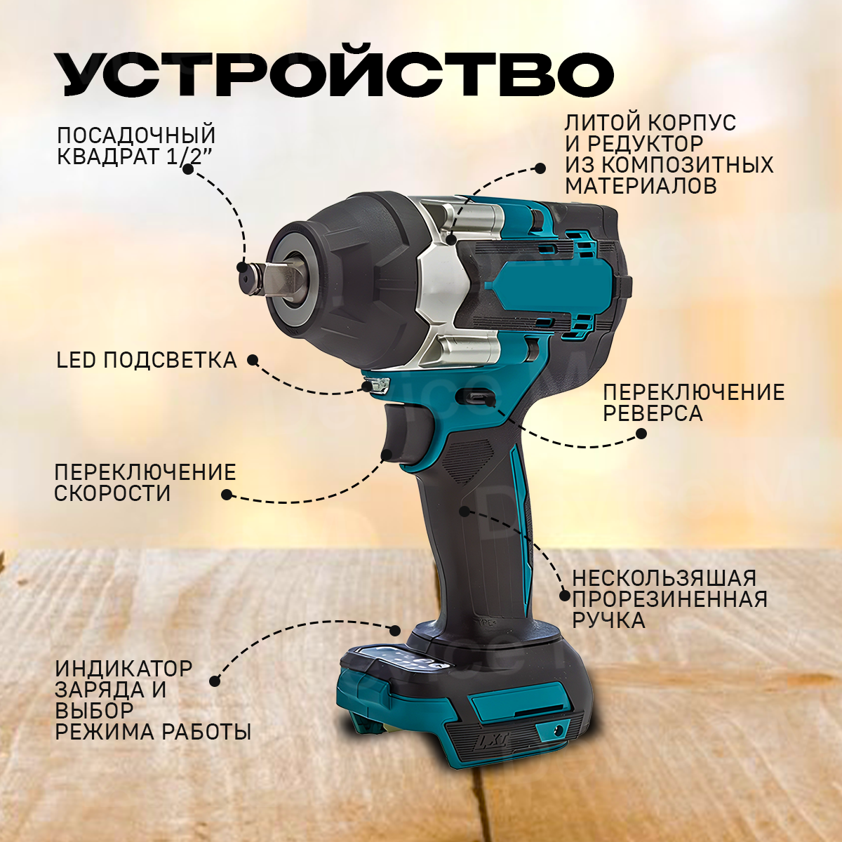| Комплектация | Гайковерт 1шт Аккумулятор 2шт Зарядное устройство 1шт Инструкции по безопасности Кейс |