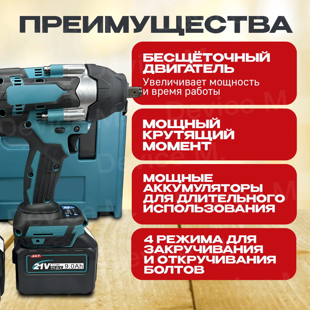 Гайковерт ударный аккумуляторный 800Hm, 21В, 4Ач, 2 аккумулятора, кейс интересное: