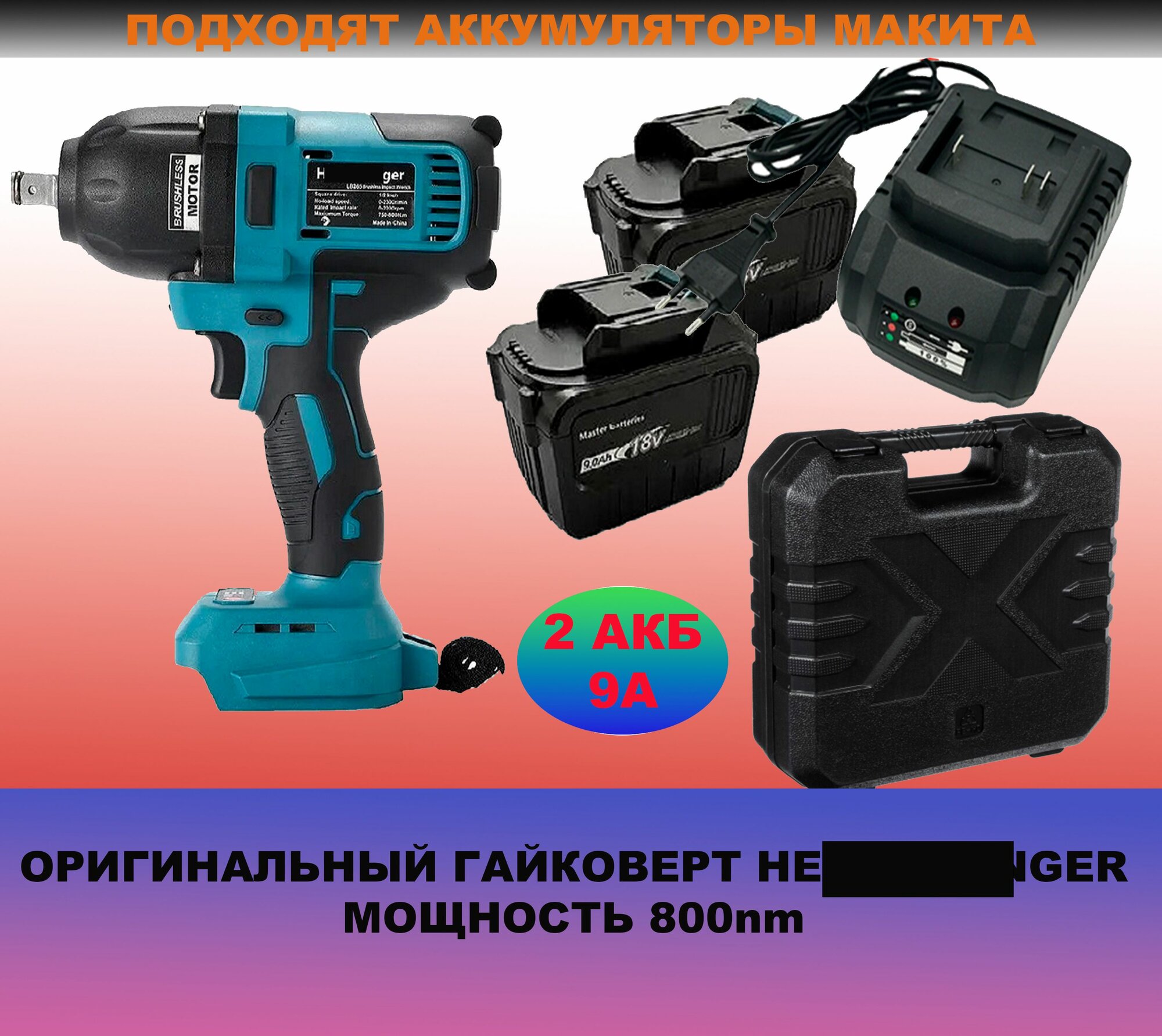 Бесщеточный аккумуляторный ударный гайковерт Heimerdinger 1/2 дюйма 800 Нм для ремонта автомобилей, с одной батареей 18 В 9,0 Ач