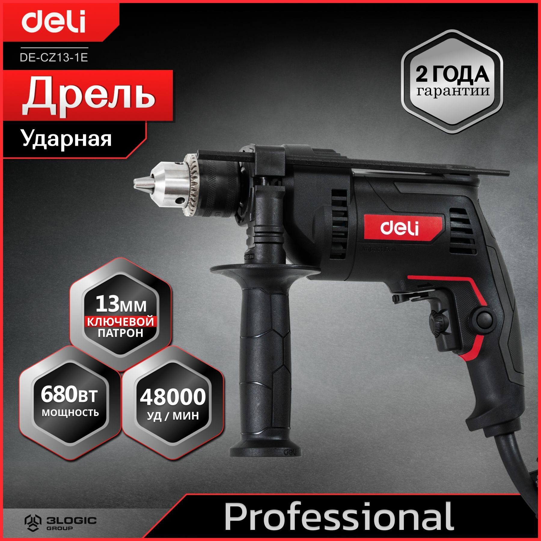 Купить Профессиональная ударная дрель Deli DE-CZ13-1E (680Вт, ключевой патрон 13мм, 4800 уд/мин, 3000 об/мин)