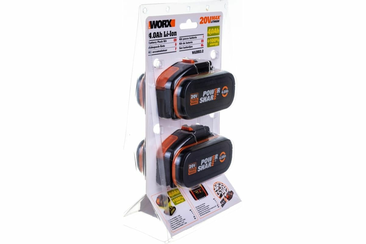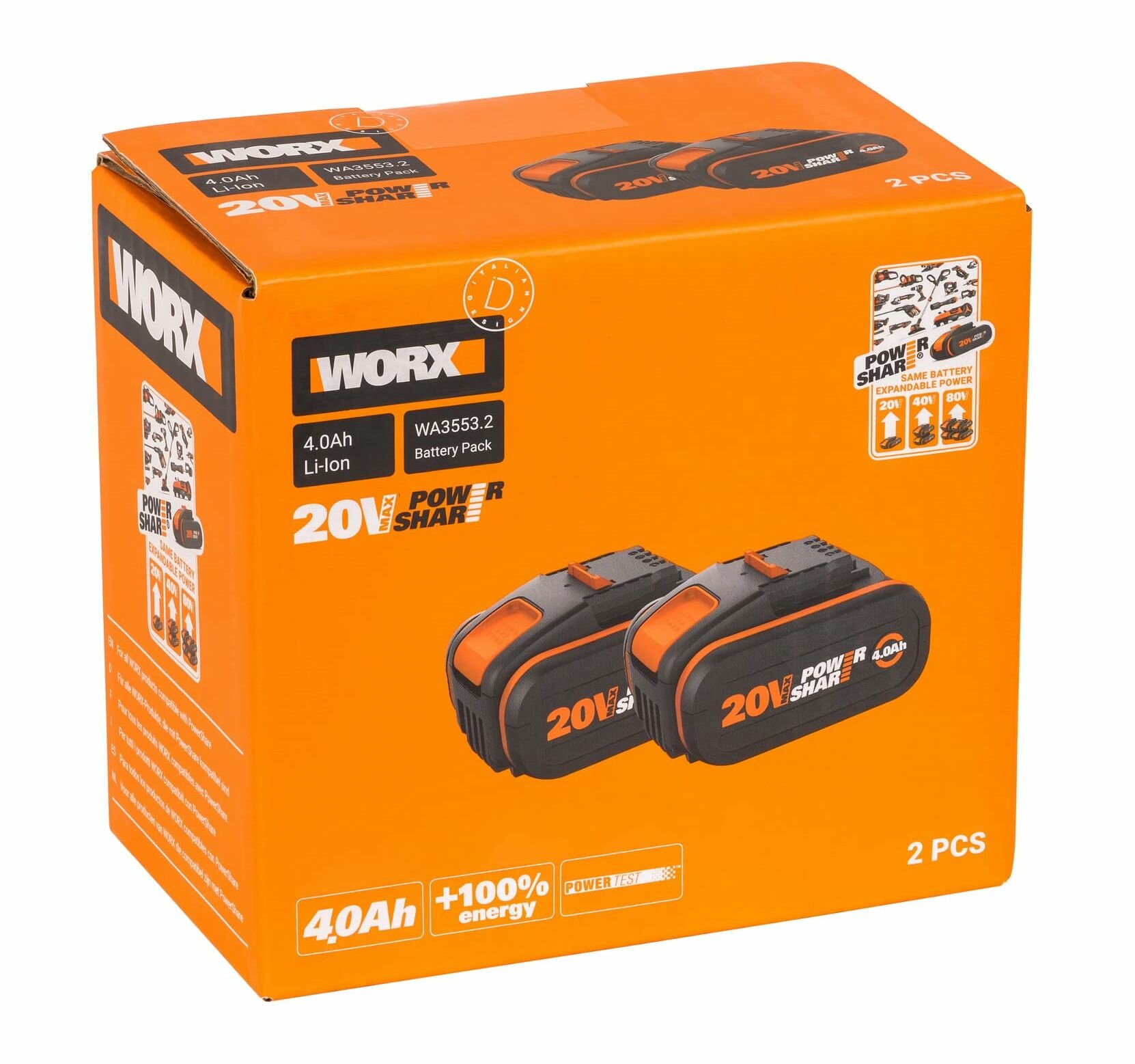 Комплект Worx WA3553.2: 2 аккумулятора WORX WA3553, 4 А*ч, 20 В