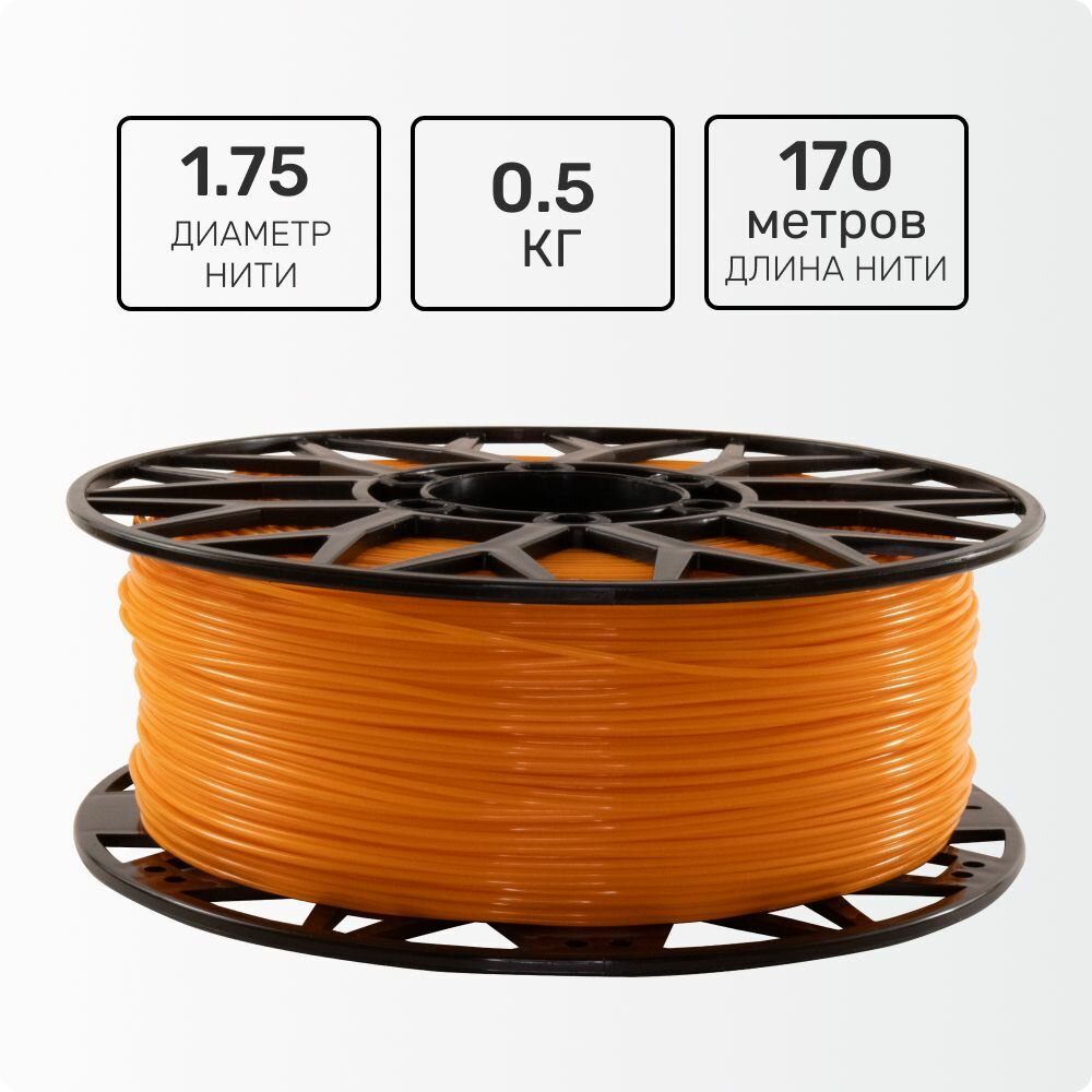 Пластик для 3D принтера PLA. Оранжевый. 1,75мм, 0,5 кг. интересное: