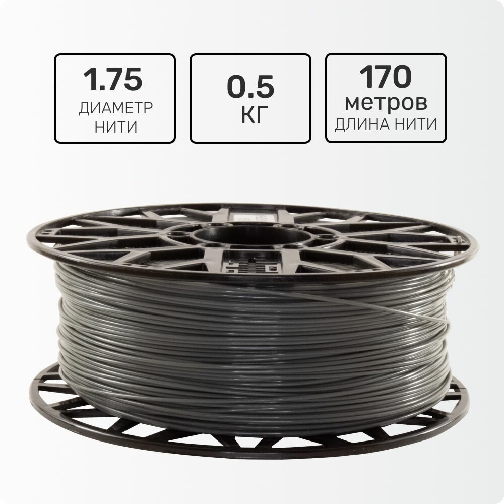 Пластик для 3D принтера PLA. Темно-серый. 1,75мм, 0,5 кг. интересное: