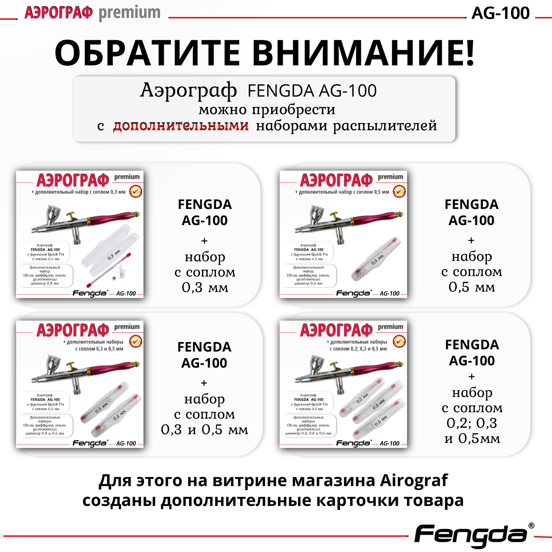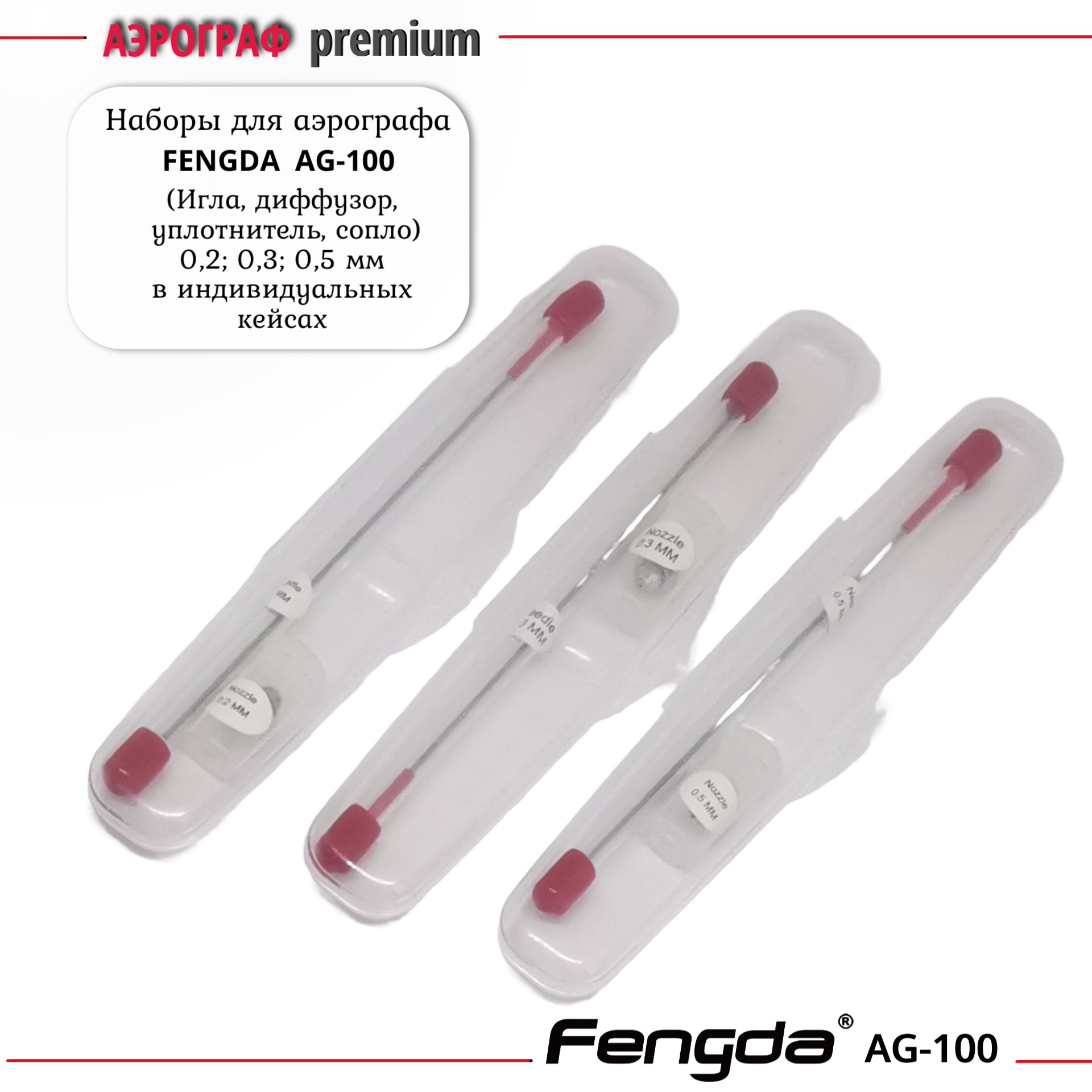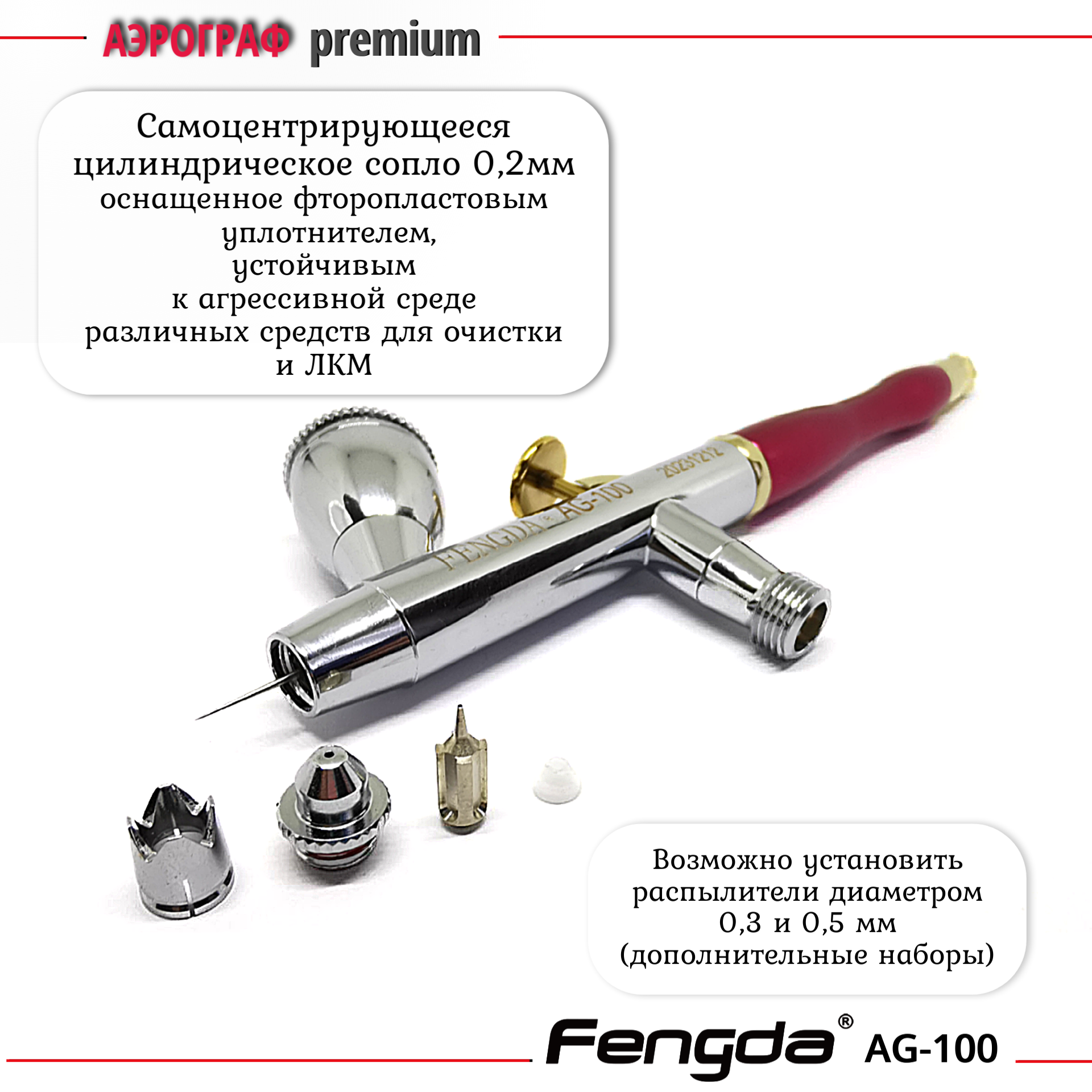 Аэрограф AG-100 FENGDA с функцией Quick Fix сопло 0,2мм + три набора с соплом 0,2мм 0,3 мм и 0,5 мм интересное: