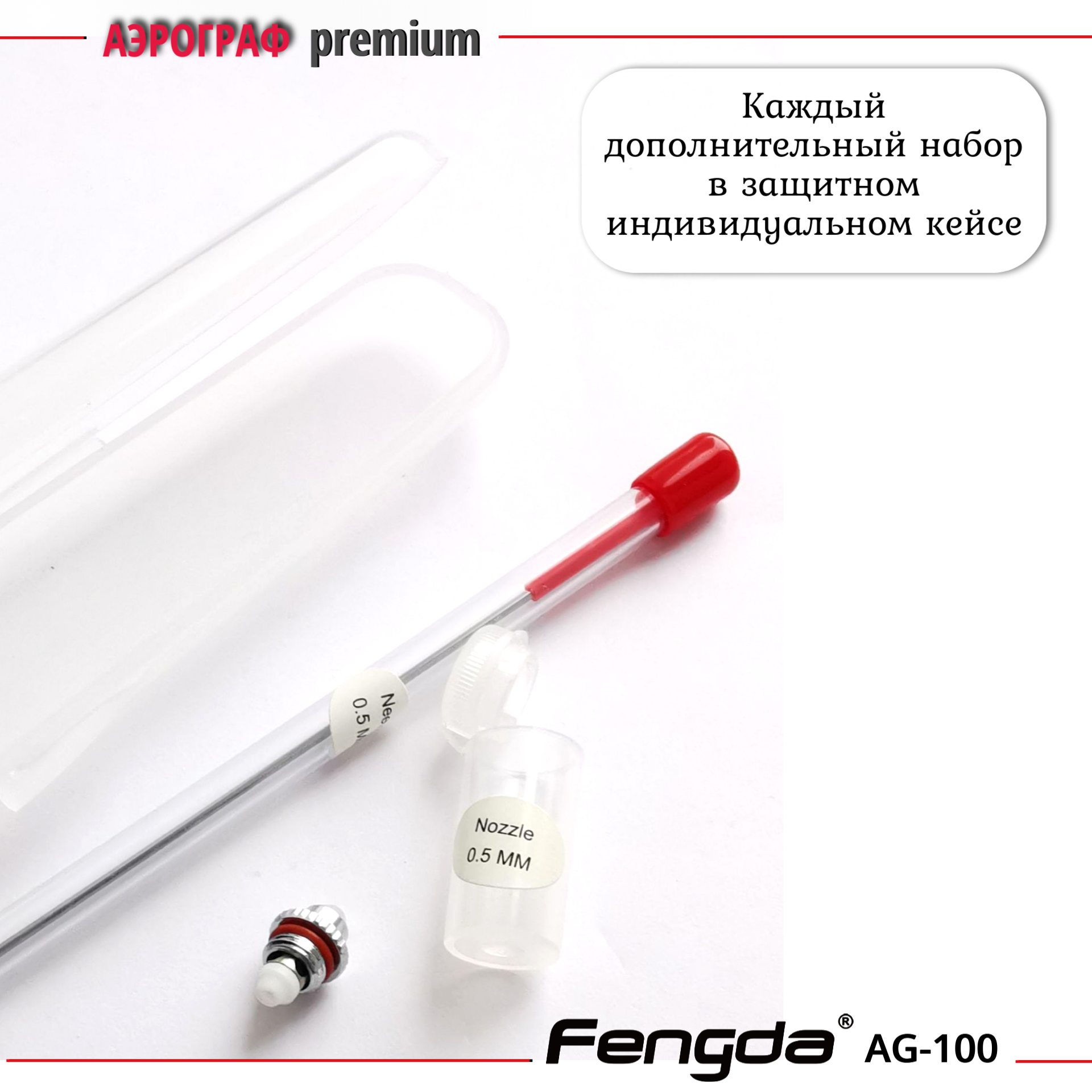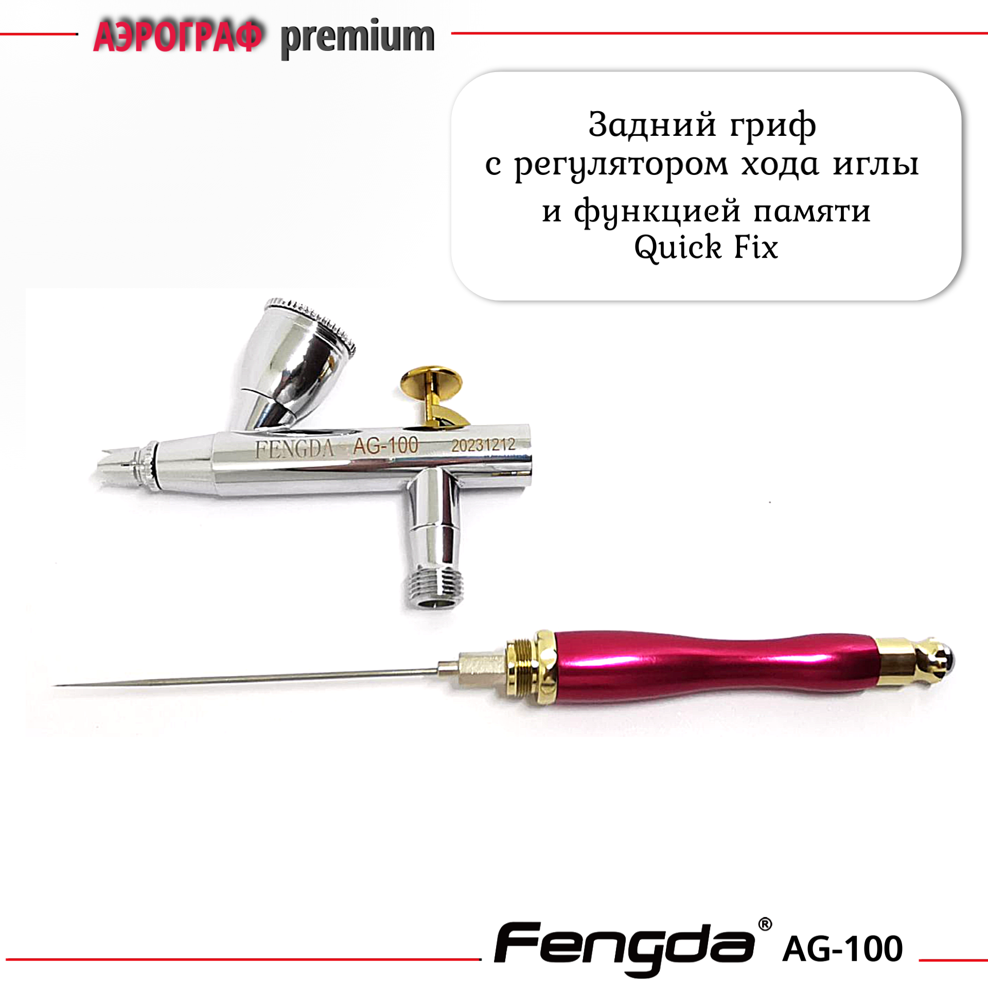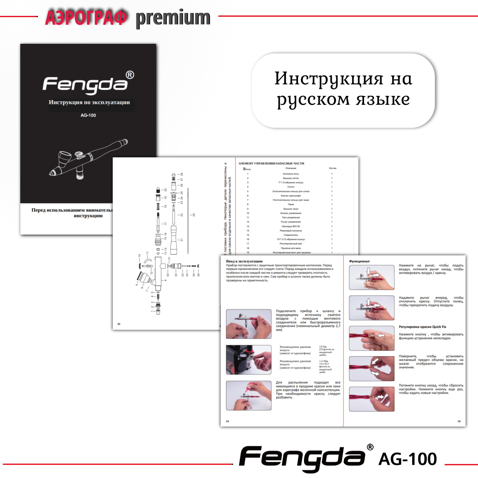Аэрограф AG-100 FENGDA с функцией Quick Fix сопло 0,2мм + три набора с соплом 0,2мм 0,3 мм и 0,5 мм интересное: