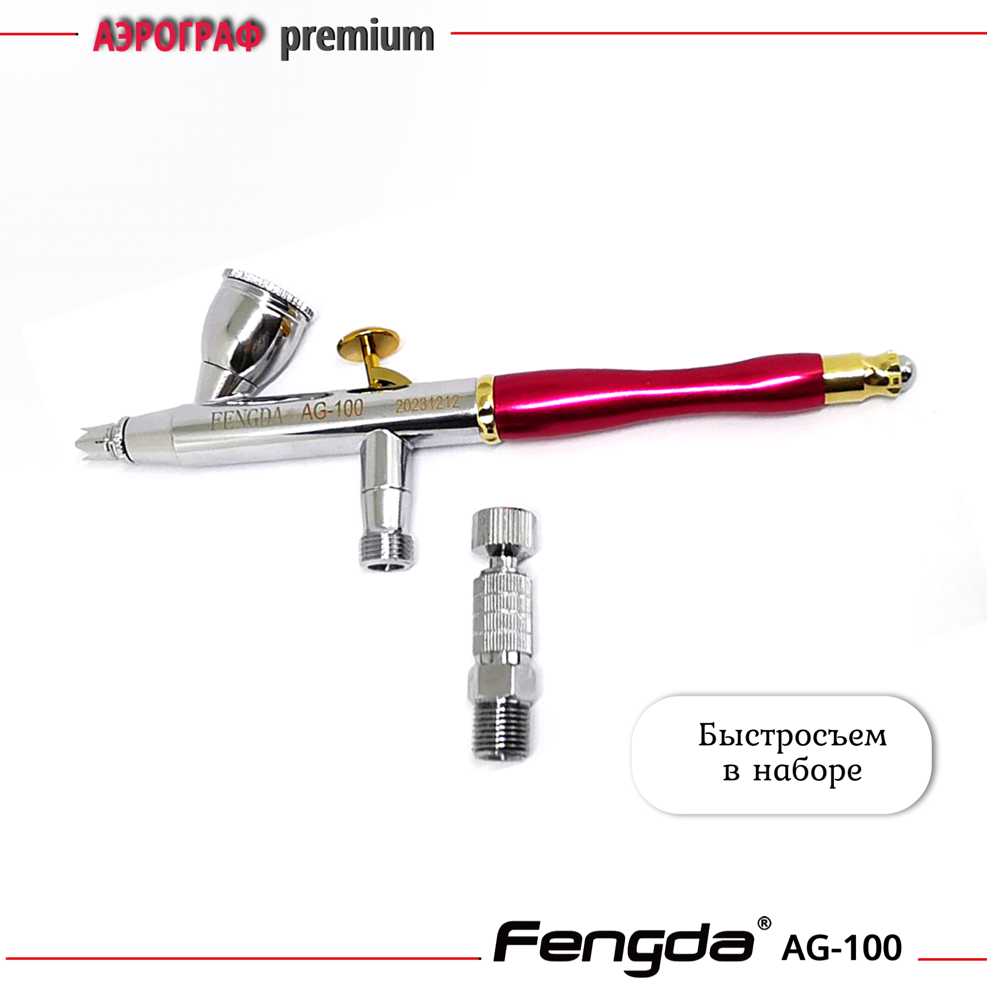 Купить Аэрограф AG-100 FENGDA с функцией Quick Fix сопло 0,2мм + три набора с соплом 0,2мм 0,3 мм и 0,5 мм
