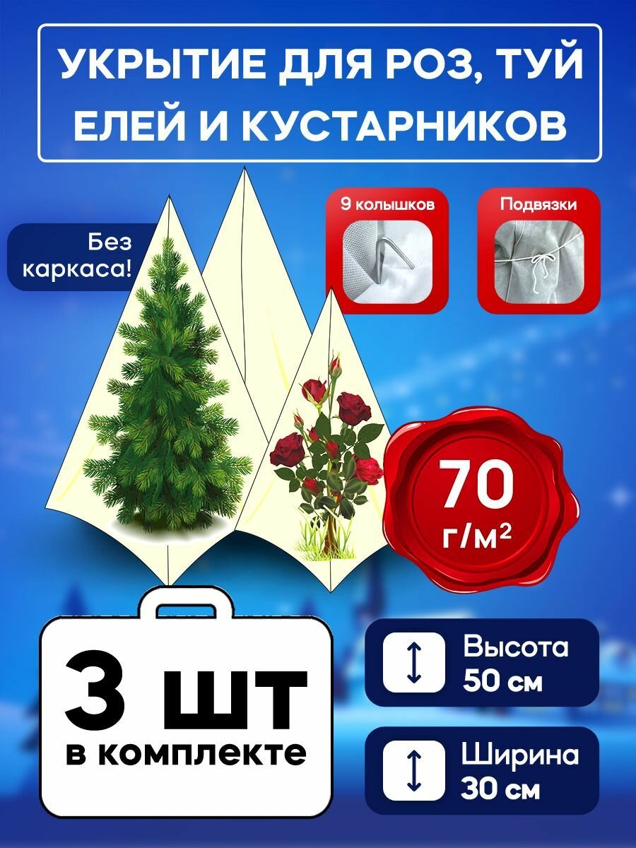 Купить Чехол 70гр для роз и декоративных кустарников 50 см 3 + скобы