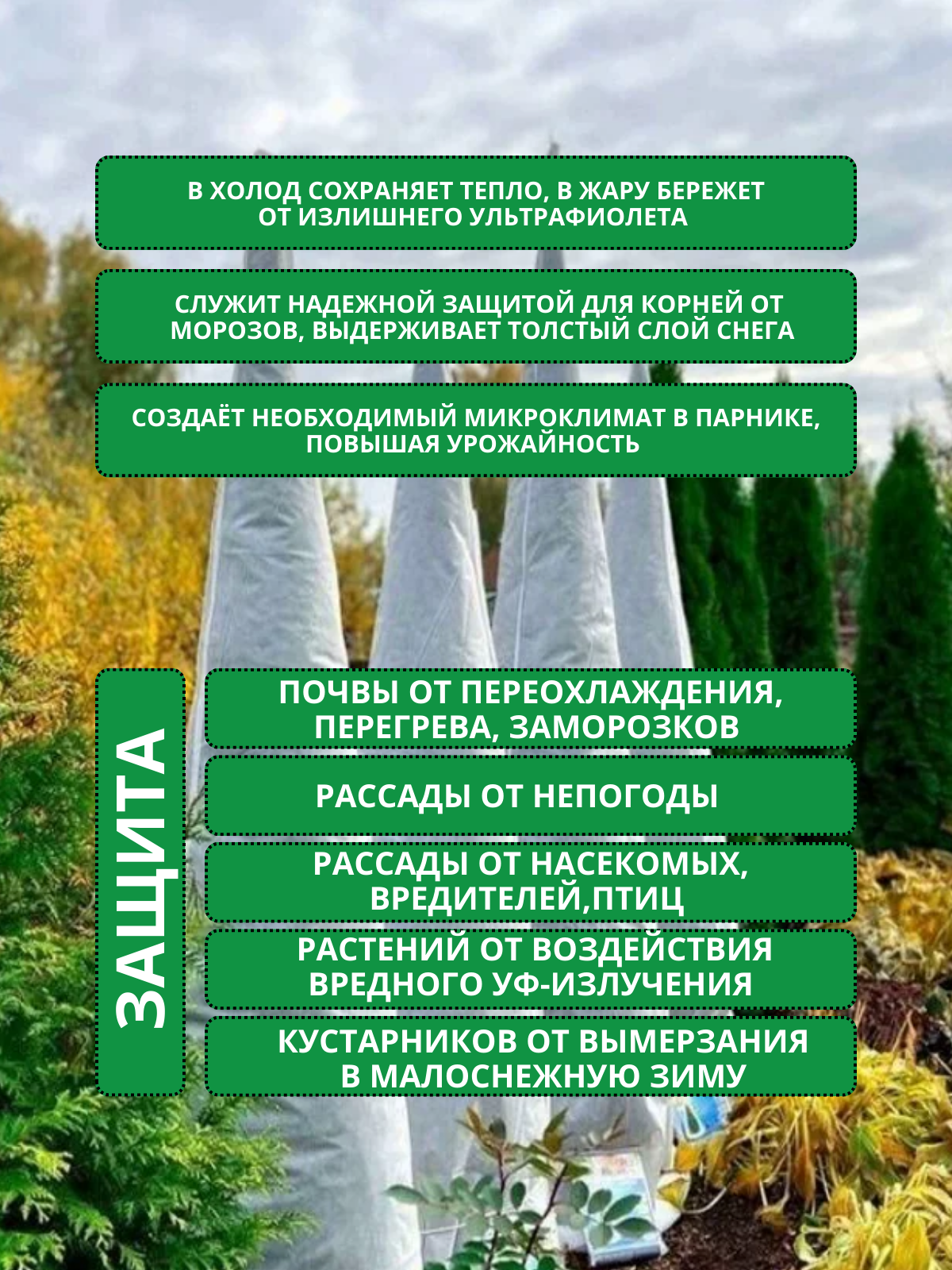 | Назначение | для защиты от морозов, для теплиц, для укрытия растений |