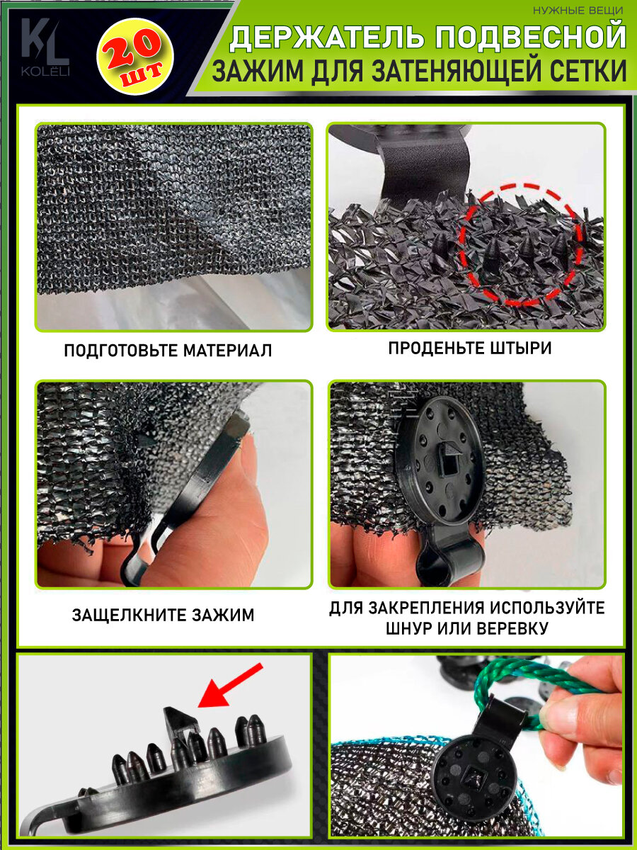 KoLeli / Клипса пластиковая / Зажим для затеняющей сетки / клипса люверс, 20 шт. интересное: