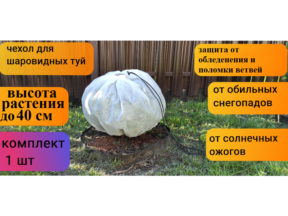 Зимний чехол для кустов и деревьев с затяжкой/для шаровидных туй/для роз/для можжевельников/для хвойников размер 40*80 см, 1 шт. интересное: