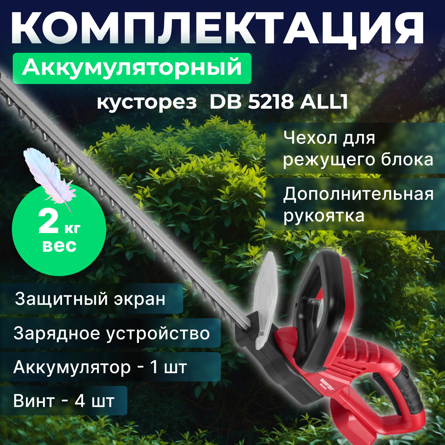 Кусторез аккумуляторный садовый WORTEX DB 5218 ALL1 с АКБ и З/У (1334652) интересное: