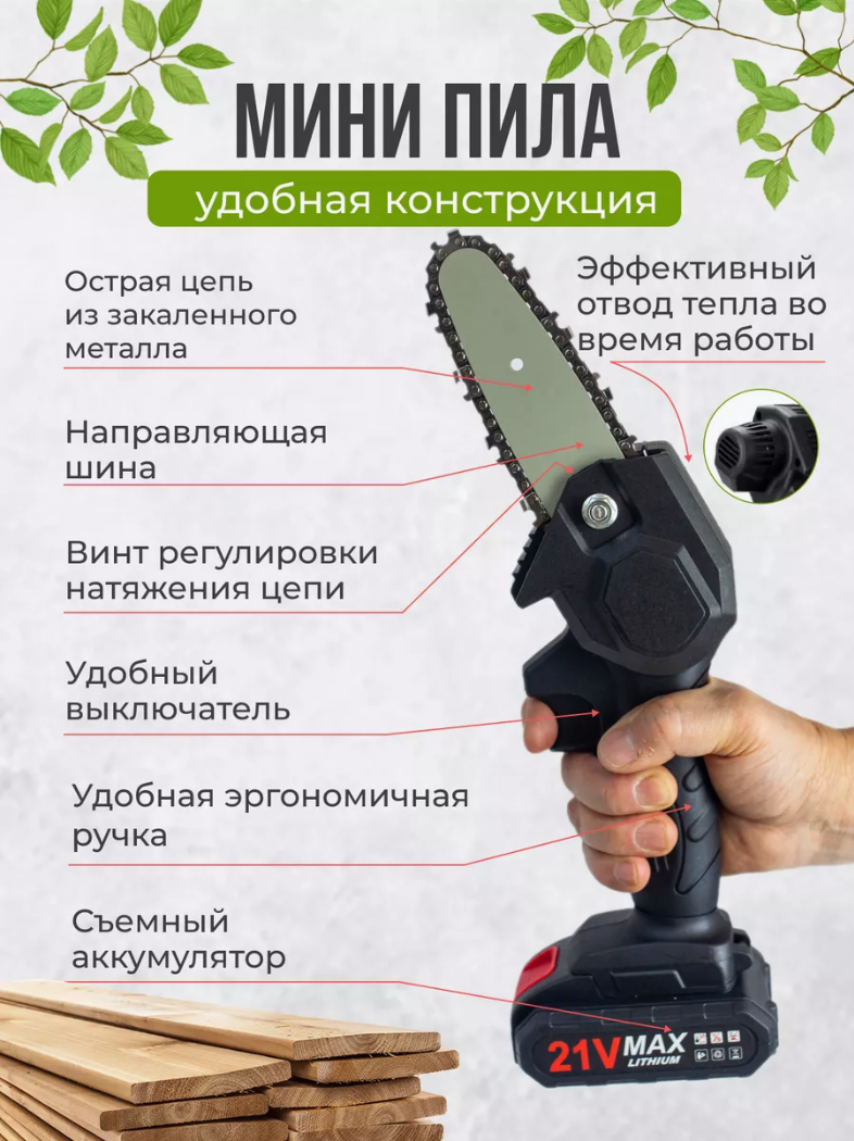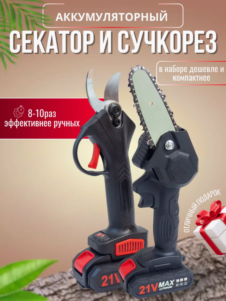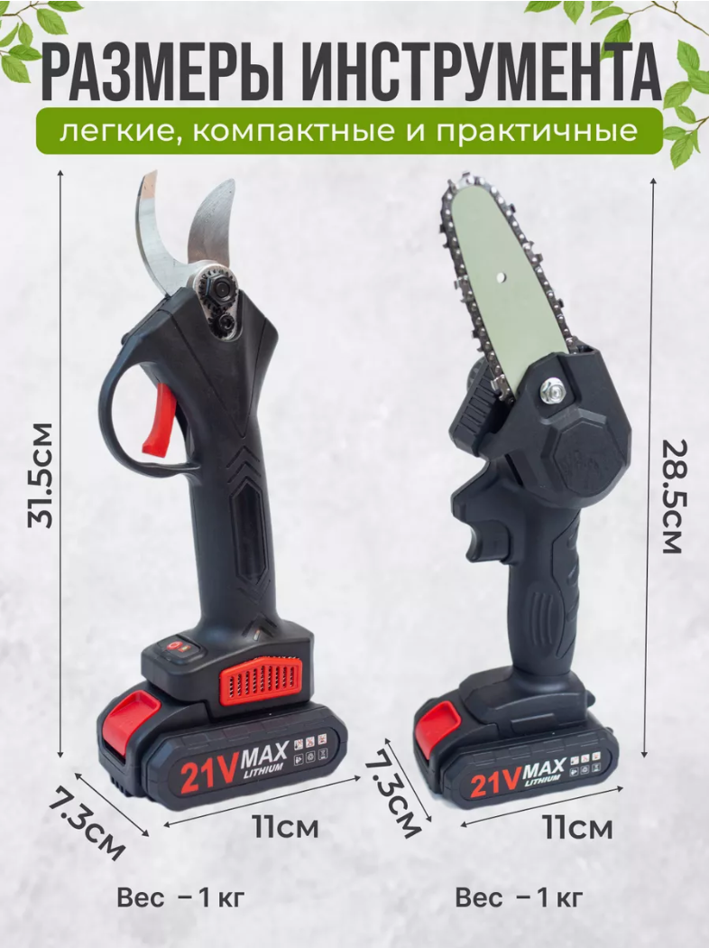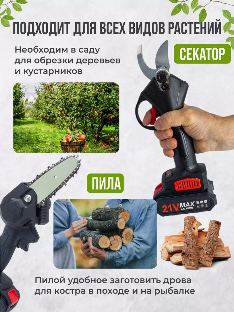 Секатор пила садовый аккумуляторный для дачи огорода дома/ набор инструментов для дачи