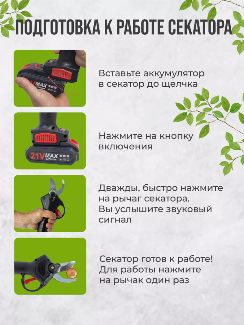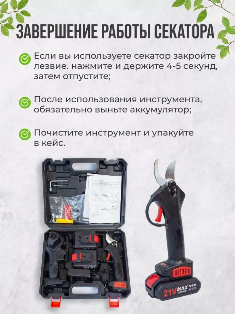 Набор секатор + пила аккумуляторная в кейсе + 2 АКБ интересное: