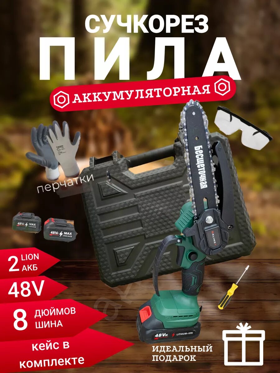 Секатор пила садовый аккумуляторный для дачи огорода дома/ набор инструментов для дачи