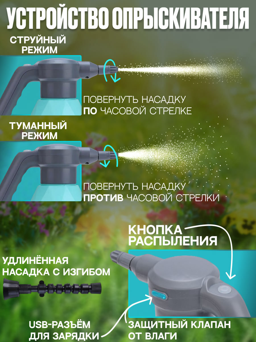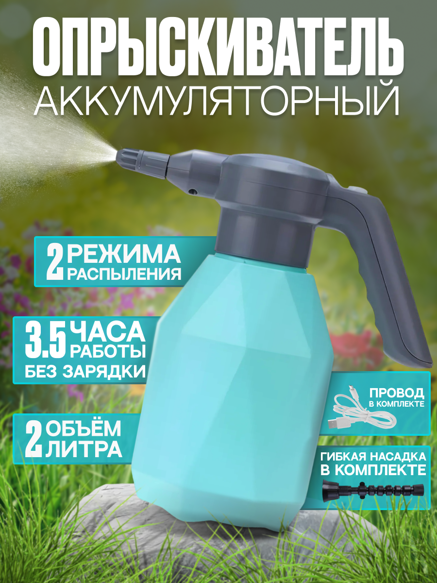 Опрыскиватель садовый аккумуляторный пульверизатор 2л литра для домашних цветов, растений, сада, дачи, огорода интересное: