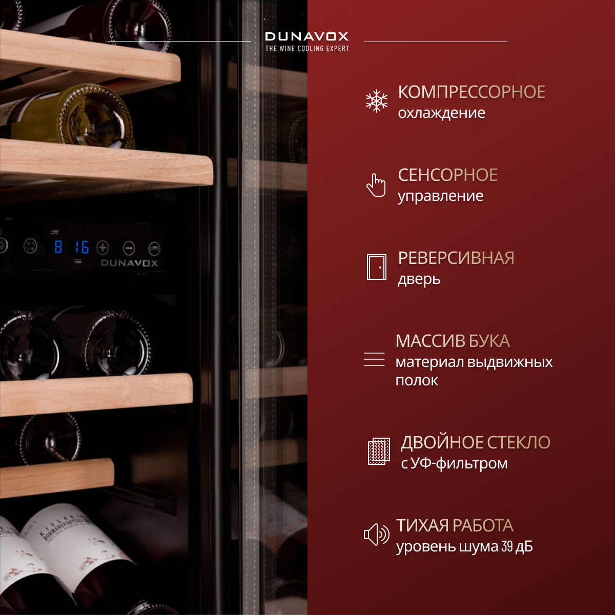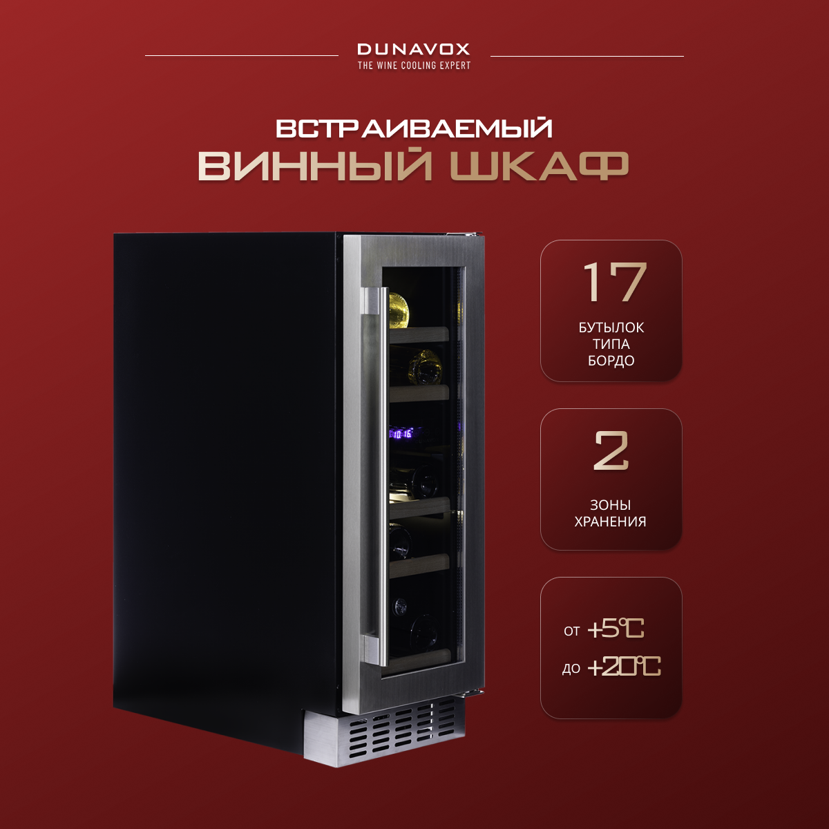 Винный холодильный шкаф Dunavox DAUF-17.58DSS компрессорный (встраиваемый холодильник для вина на 17 бутылок) интересное: