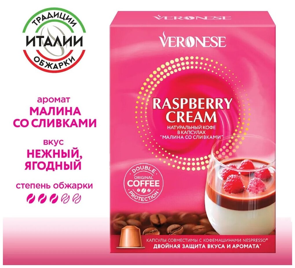 Купить Кофе в капсулах Veronese Raspberry Cream (Малина со сливками), стандарт Nespresso, 10 капсул