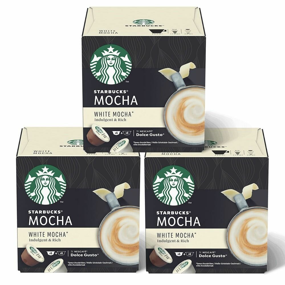Купить Кофе в капсулах Starbucks Dolce Gusto Caps White Chocolate Mocha, Старбакс в капсулах для кофемашины Нескафе Дольче Густо, эспрессо, 3 уп. по 12 шт.