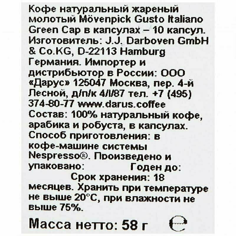 Movenpick Gusto Italiano Lungo ALU 10 капсул по 5,7г интересное: