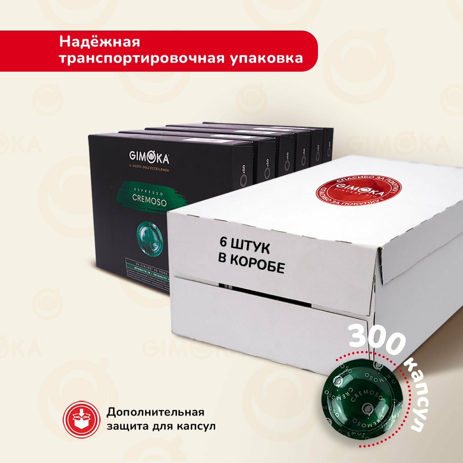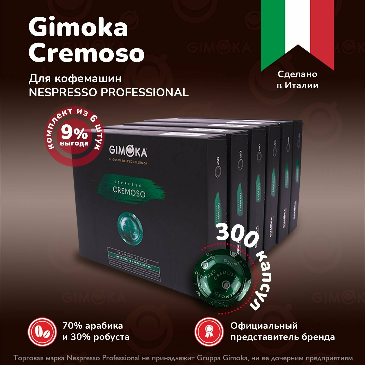 Кофе в капсулах Gimoka Cremoso, жареный, молотый, для системы кофемашин Nespresso Professional , 50 шт, 6 упаковок / капсульный для Неспрессо