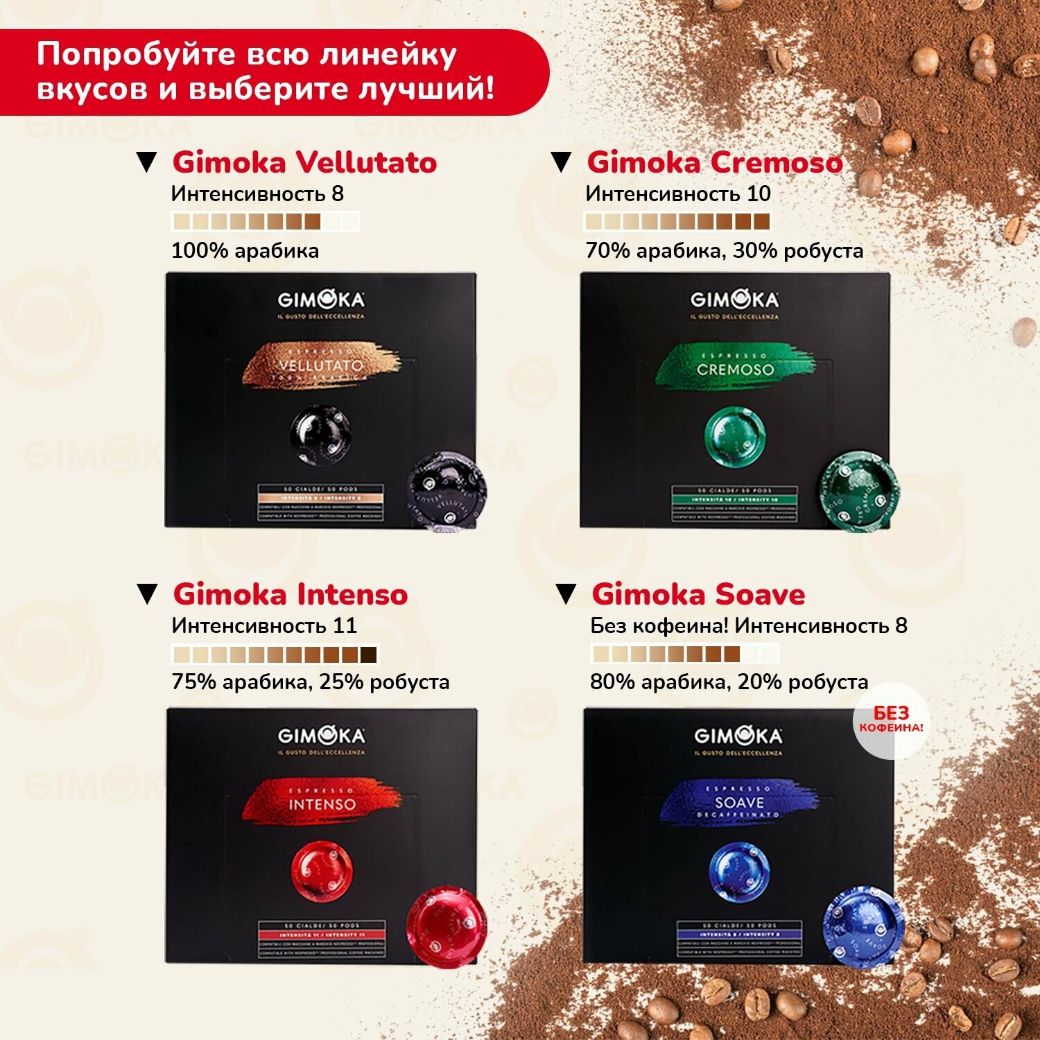 Ниже Вы можете прочитать отзывы на Кофе в капсулах Gimoka Cremoso, 50 шт, 6 упаковок / для кофемашин Nespresso Professional, ознакомится с подробными характеристиками, посмотреть интересные обзоры и фотографии на Кофе в капсулах Gimoka Cremoso, 50 шт, 6 упаковок / для кофемашин Nespresso Professional.