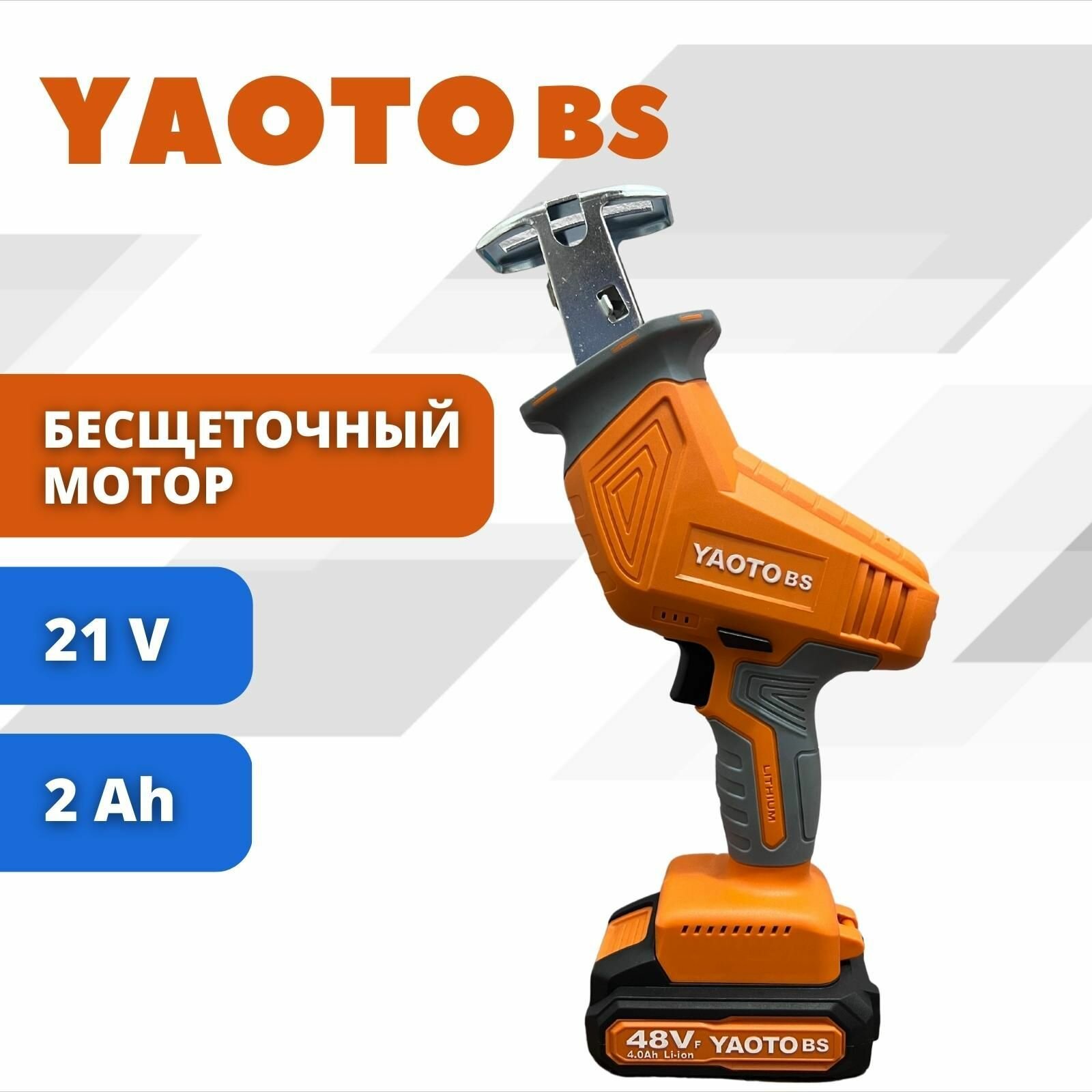 YAOTO BS 48Vf Аккумуляторная ручная сабельная пила, 21В, кейс + 2 Li-ion АКБ 2 Ач, электропила для сада интересное: