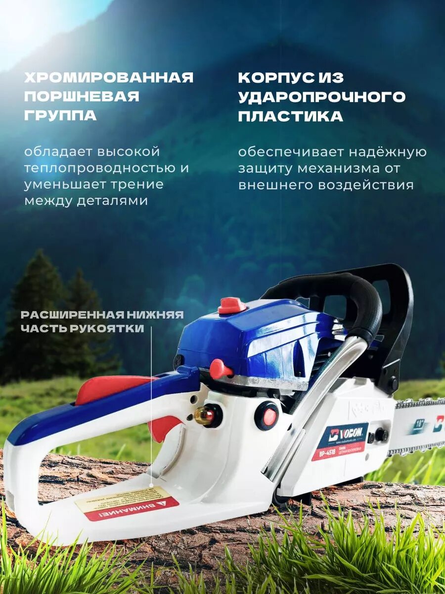 Пила цепная бензиновая VOBON 4518 бензопила интересное: