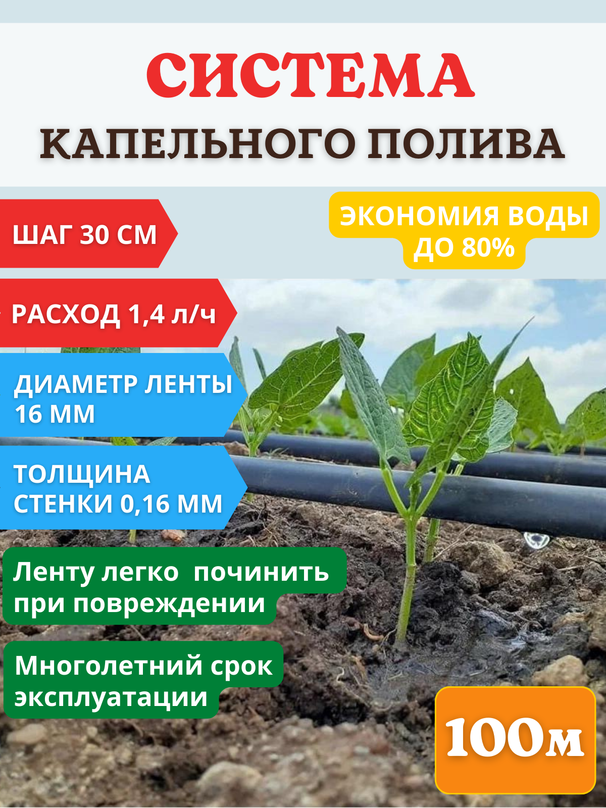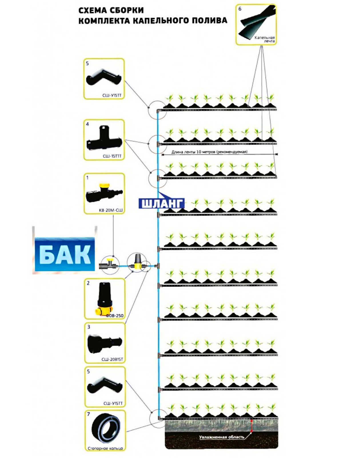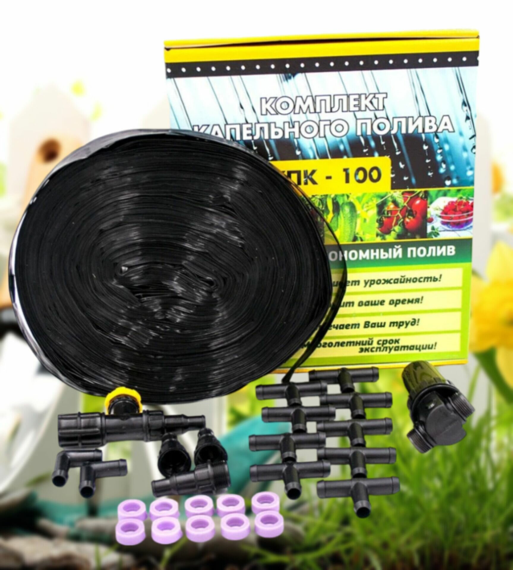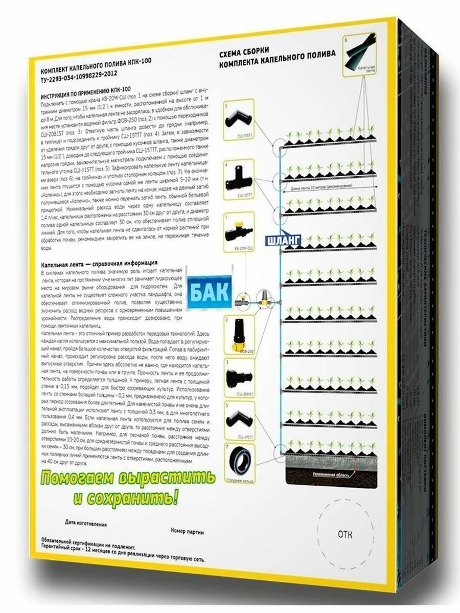 Комплект капельного полива от емкости 100 метров (КПК-100)/Система капельного полива с длиной ленты 100 м интересное: