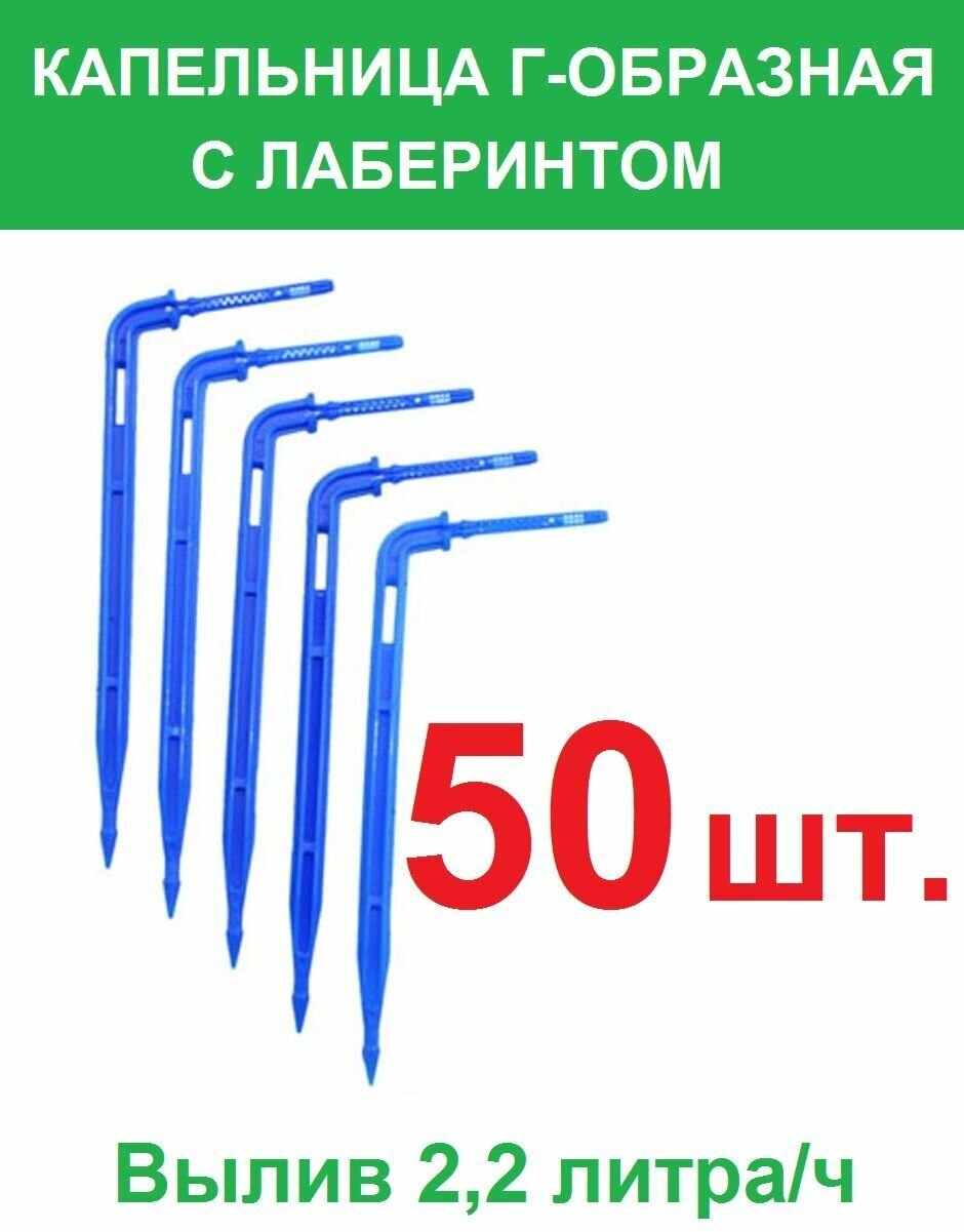 Капельница-колышек 50 шт. Г-образная с лабиринтом 2,2 л/ч интересное:
