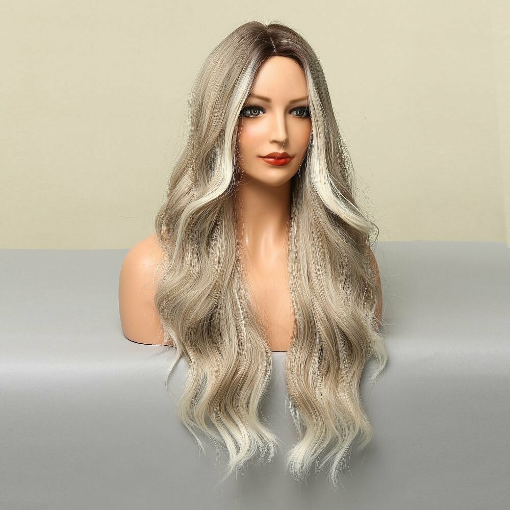 Парик на голову серебристый длинный 60см с темными корнями интересное: