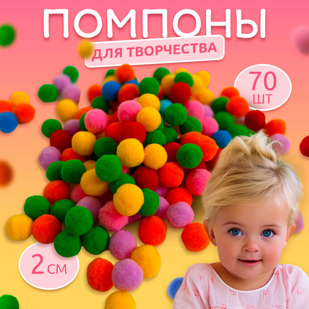 Купить Помпоны для творчества, 70 штук