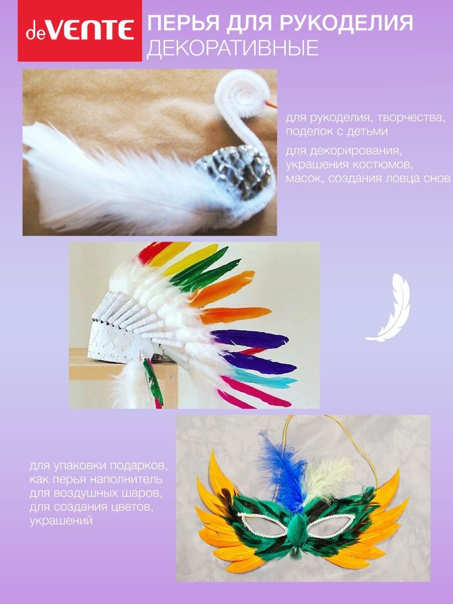 Перья декоративные "deVENTE" натуральные индюшиные, размер 10-15 см, 30 шт, розовые, в пластиковом пакете с блистерным подвесом