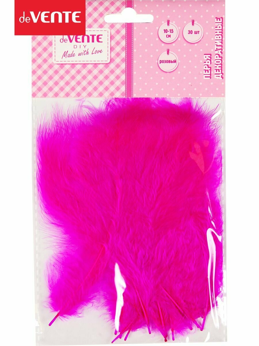Купить Перья декоративные "deVENTE" натуральные индюшиные, размер 10-15 см, 30 шт, розовые, в пластиковом пакете с блистерным подвесом