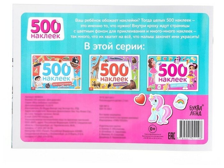 Купить Книжка 500 наклеек "Для девочек", одноразовые, 8 страниц, для детей и малышей