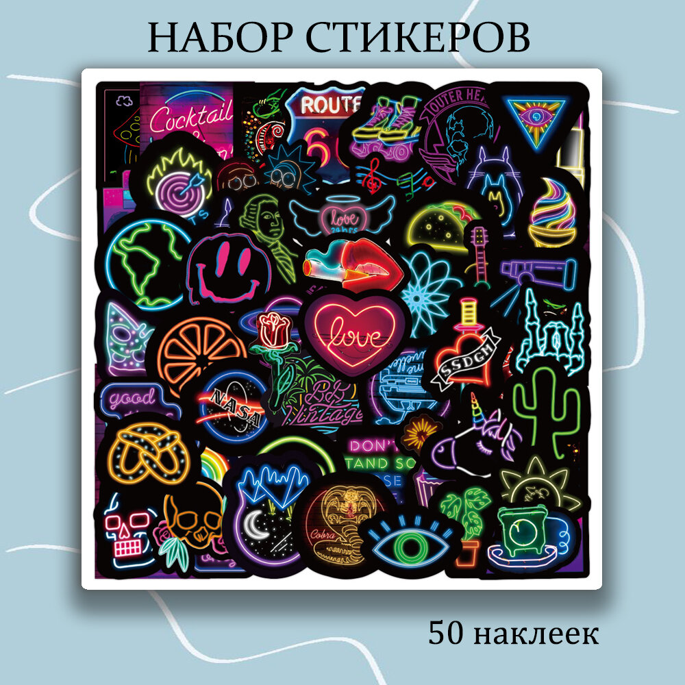 Набор наклеек Неоновое Ассорти 50 шт / стикеры самоклеющиеся интересное: