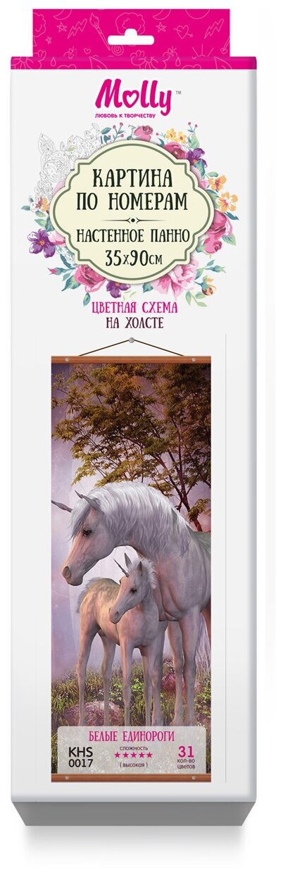 Купить Картина по номерам Панно цветной холст Molly 35х90 см Белые единороги (31 цвет)