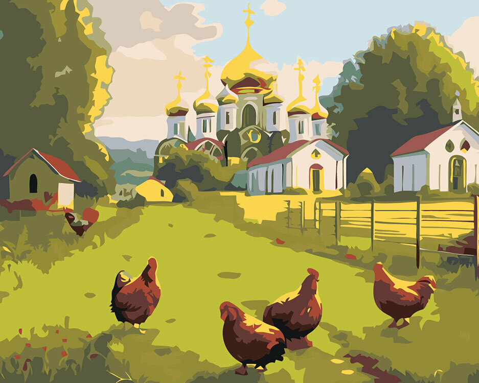 СохранитьКартина по номерам Природа Деревенский пейзаж с церковью интересное: