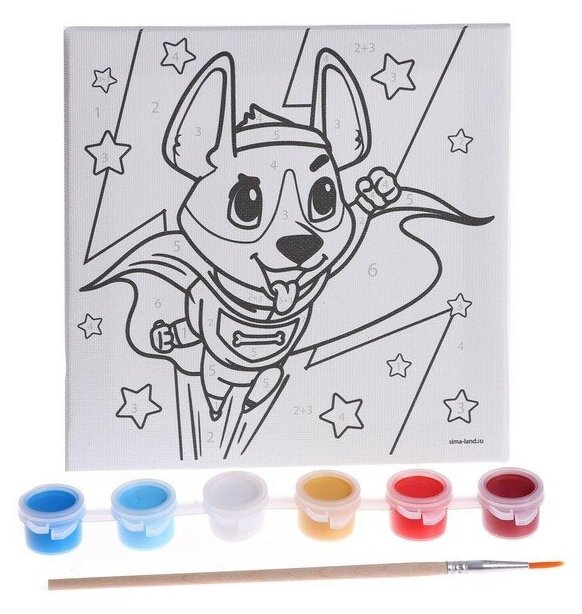 Купить Картина по номерам "Корги-герой" 15х15 см