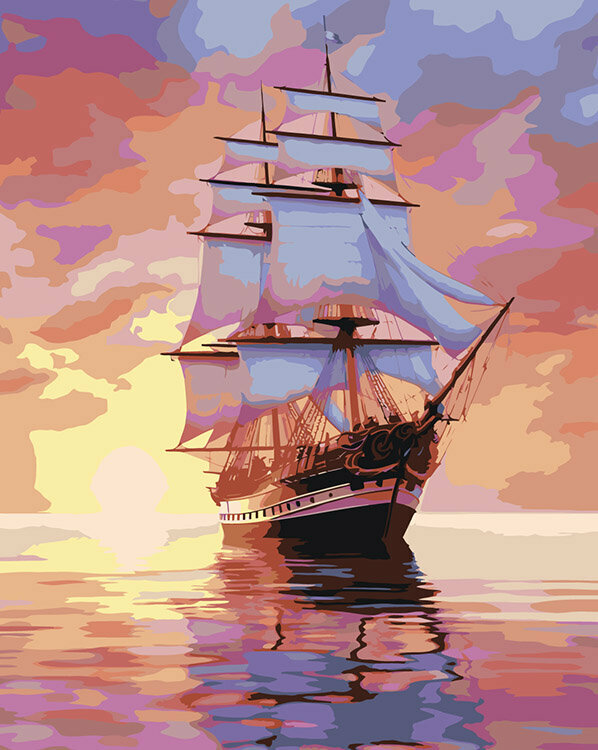 СохранитьКартина по номерам на холсте Море Парусник на закате 40x50 интересное: