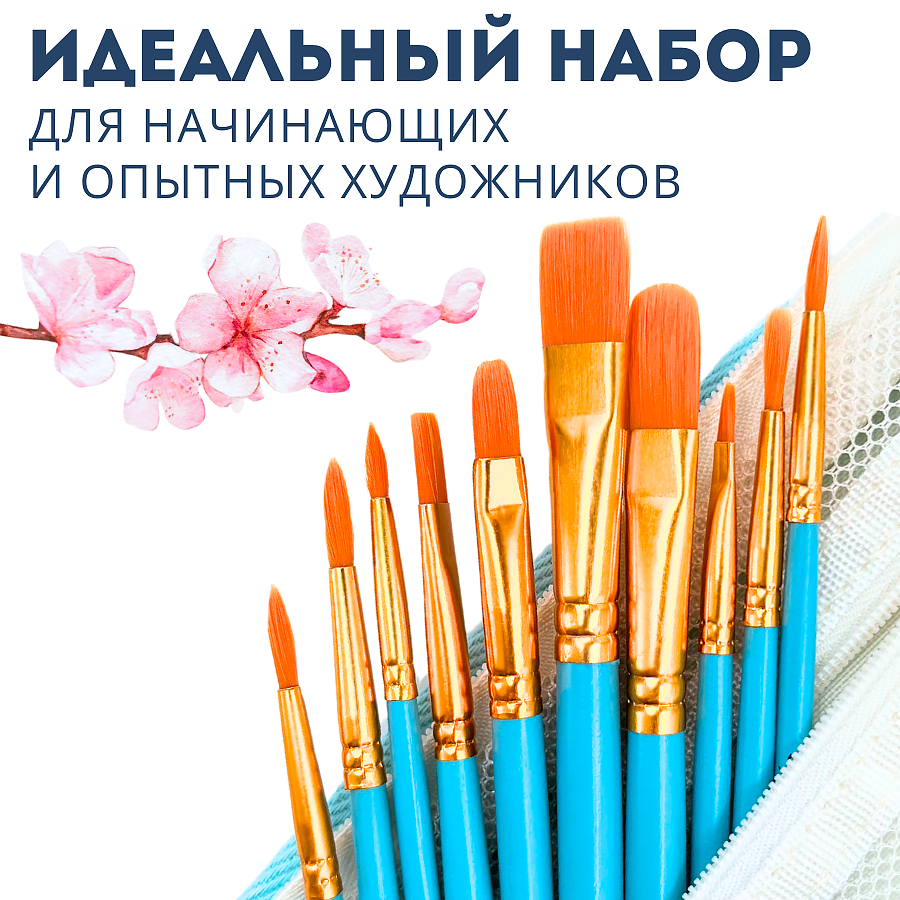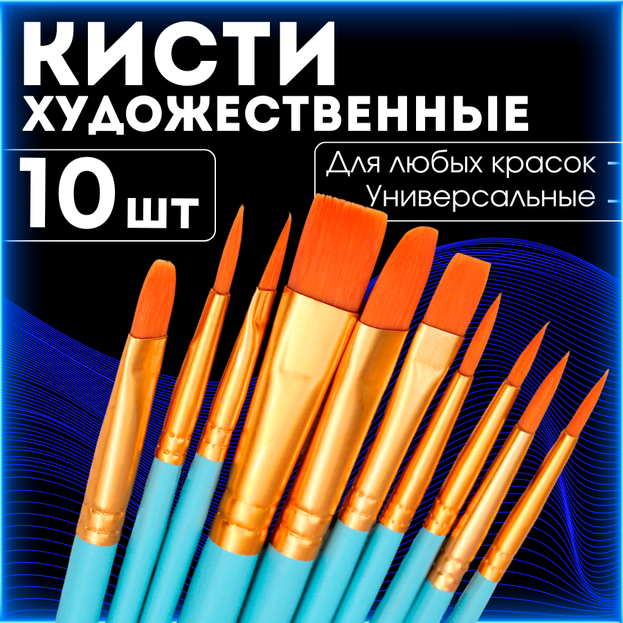 Кисти для рисования художественные набор 10 шт, васильковый интересное: