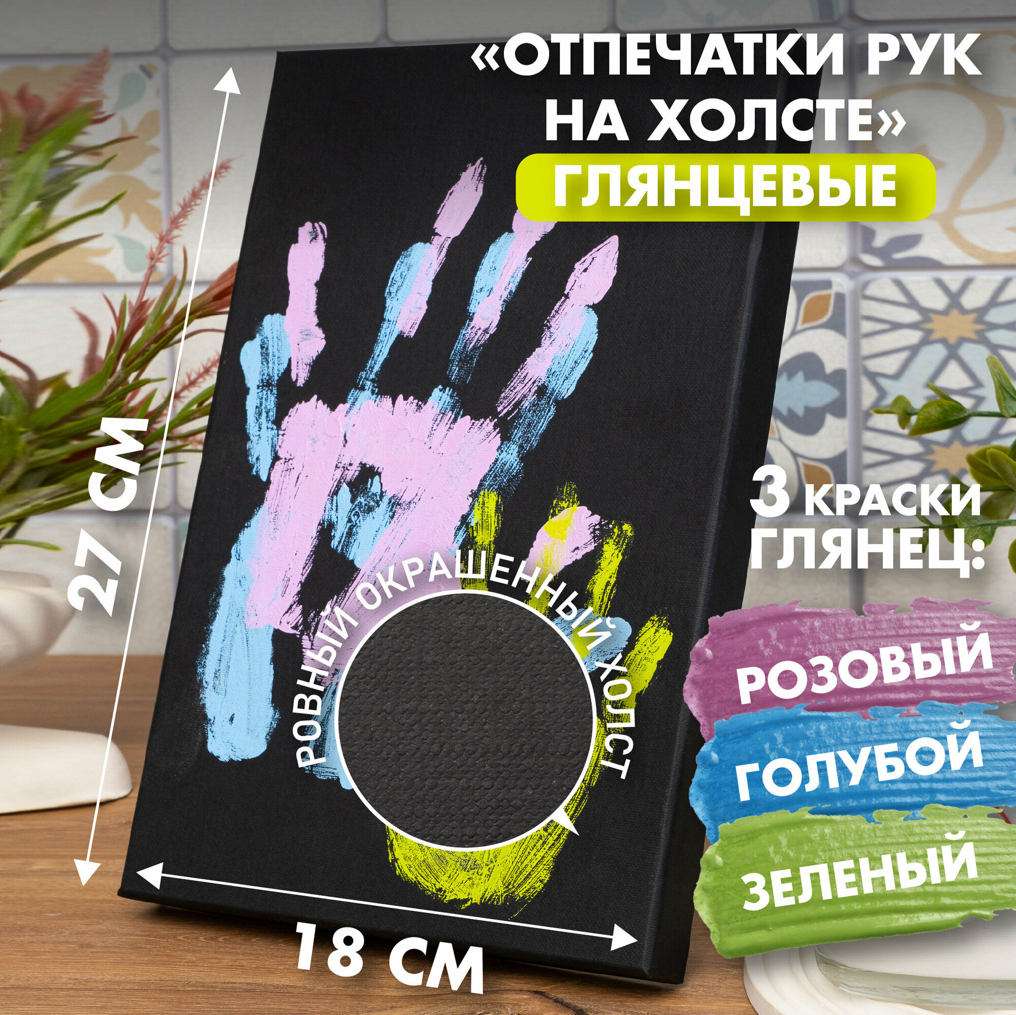 Отпечаток рук на холсте Набор для творчества черный c глянцевыми красками интересное:
