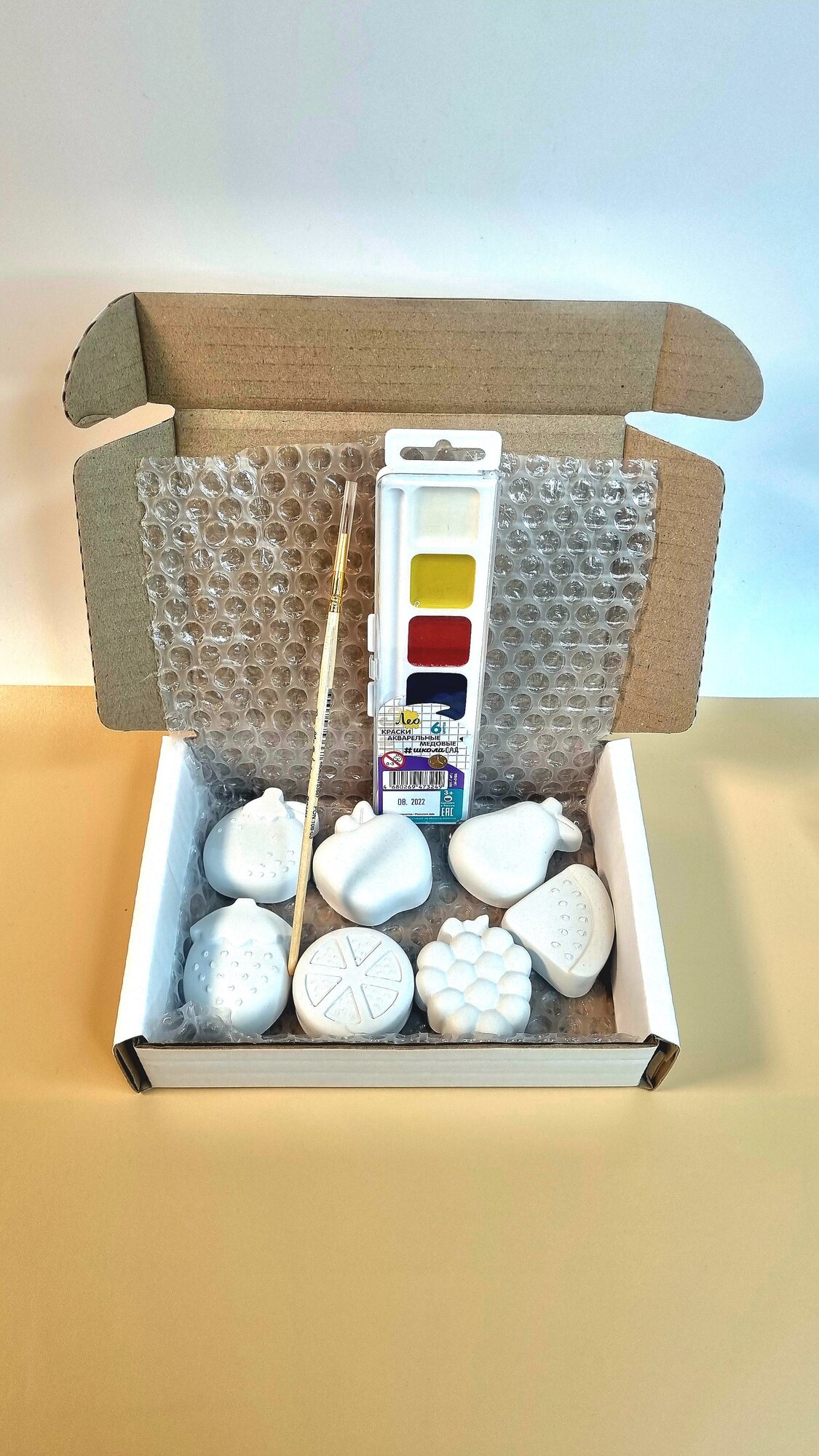| Подробная комплектация | Фрукты из гипса - 7 штук, краски, кисточка |
