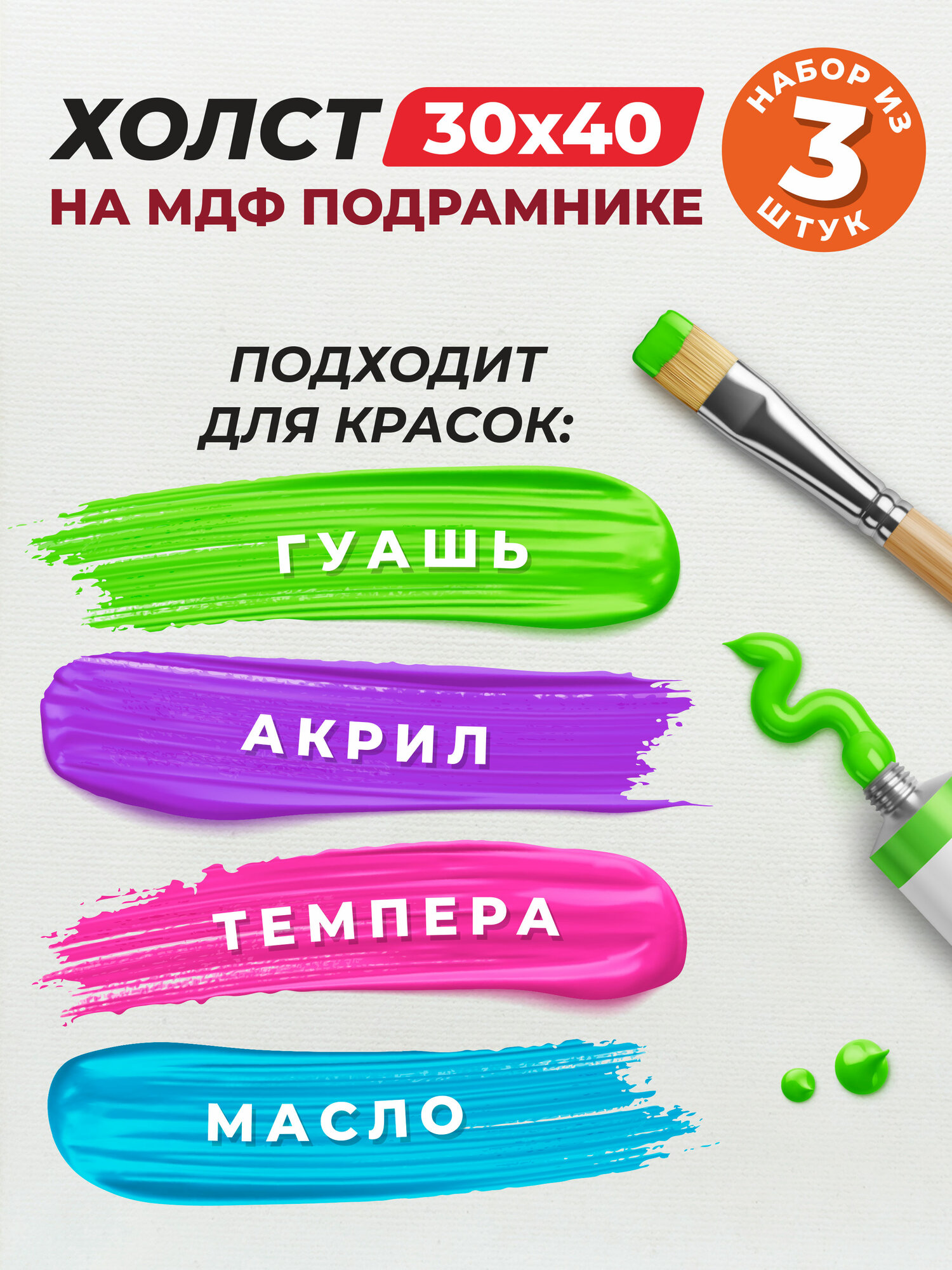 Купить Холсты для рисования на подрамнике 30х40 см для рисования. Набор 3 штуки