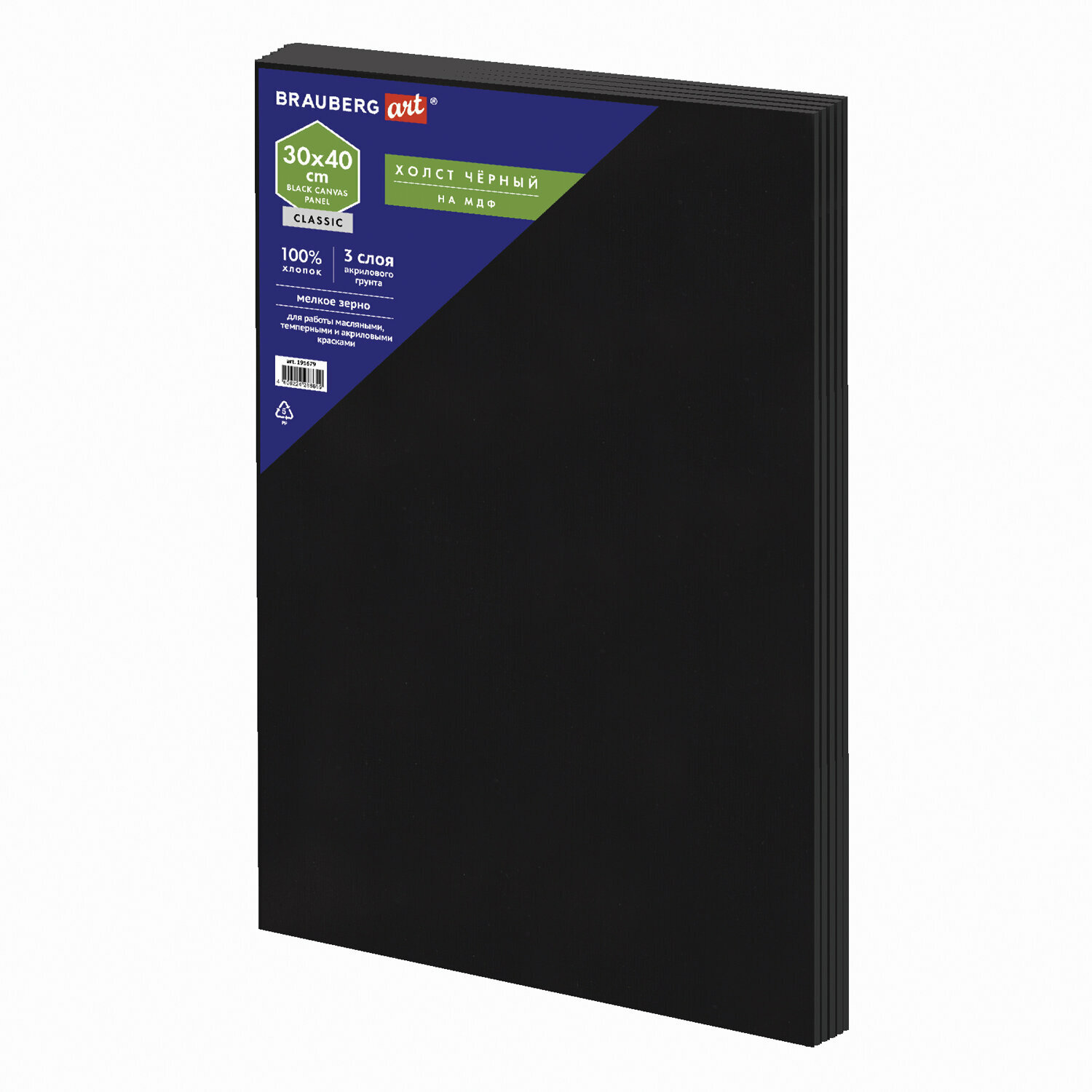Холсты черные на картоне, Комплект 5 шт., 30х40 см, 280 г/м2, грунт, 100% хлопок, Brauberg Art, 880351 интересное: