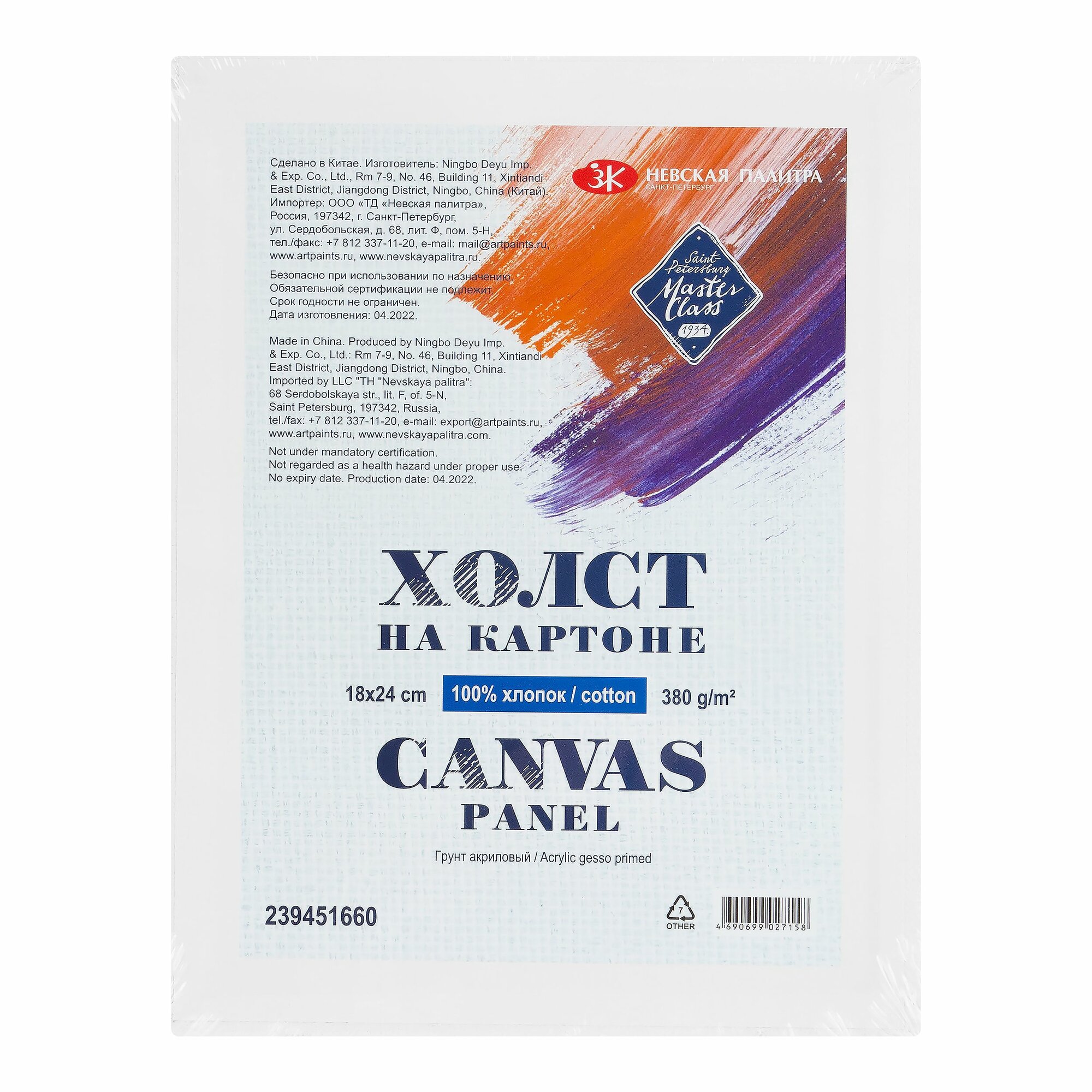 Холст на картоне Невская палитра Мастер-Класс, 18х24 см, 100 % хлопок, акриловый грунт интересное:
