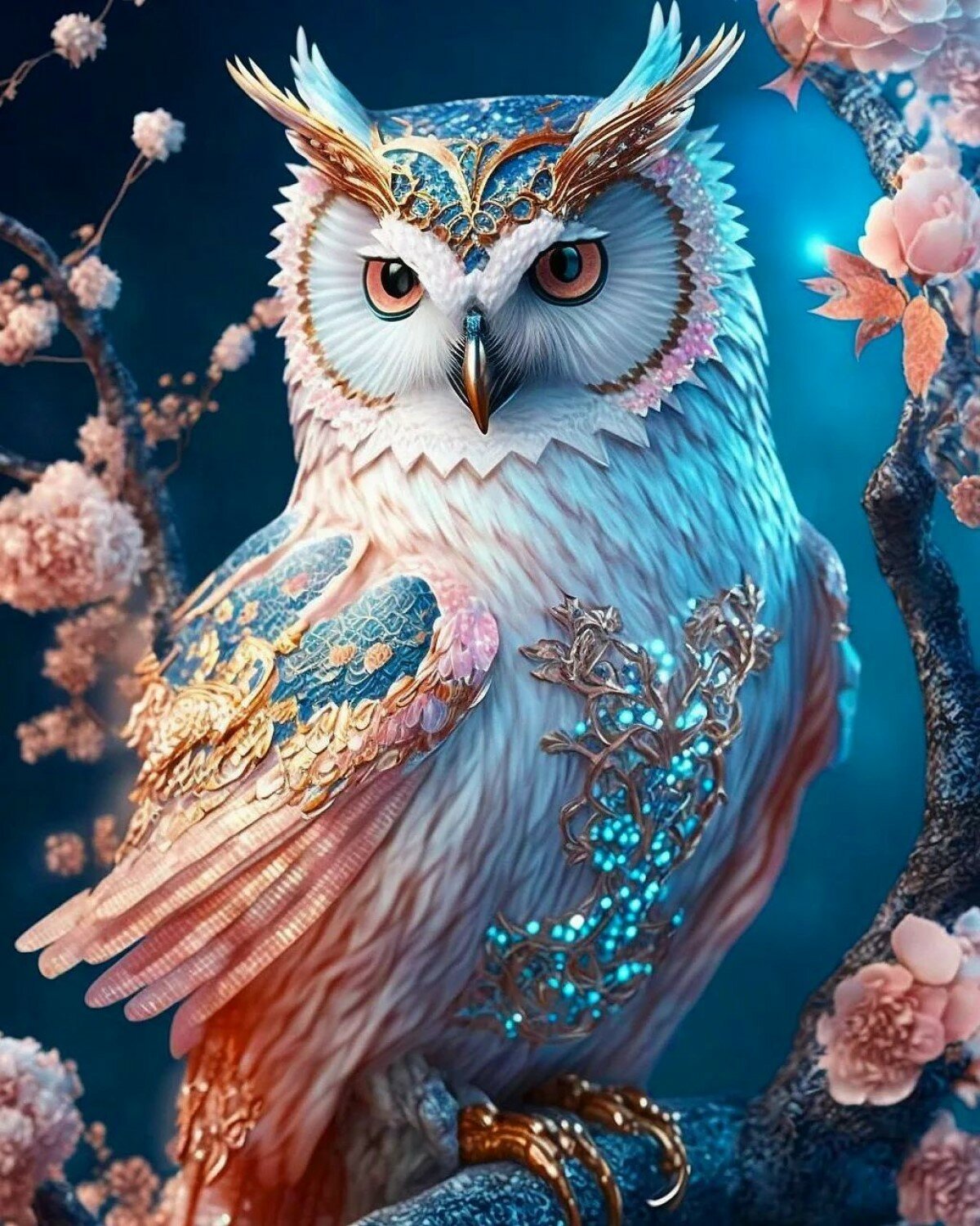 Купить Алмазная мозаика 40x50 см на холсте с подрамником. Сказочный филин на дереве