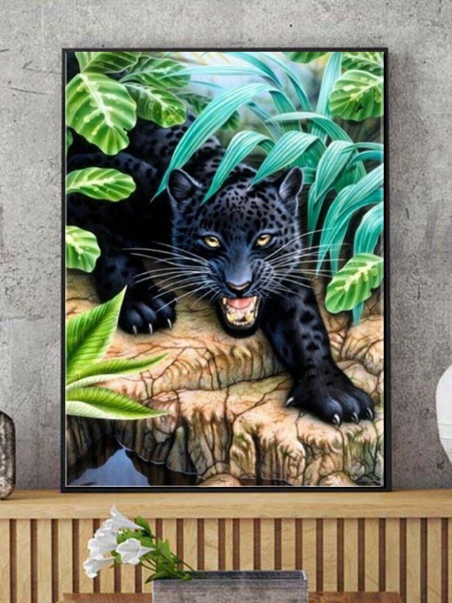 СохранитьАлмазная мозаика 40x50 см. на холсте с подрамником. Пантера на охоте. интересное: