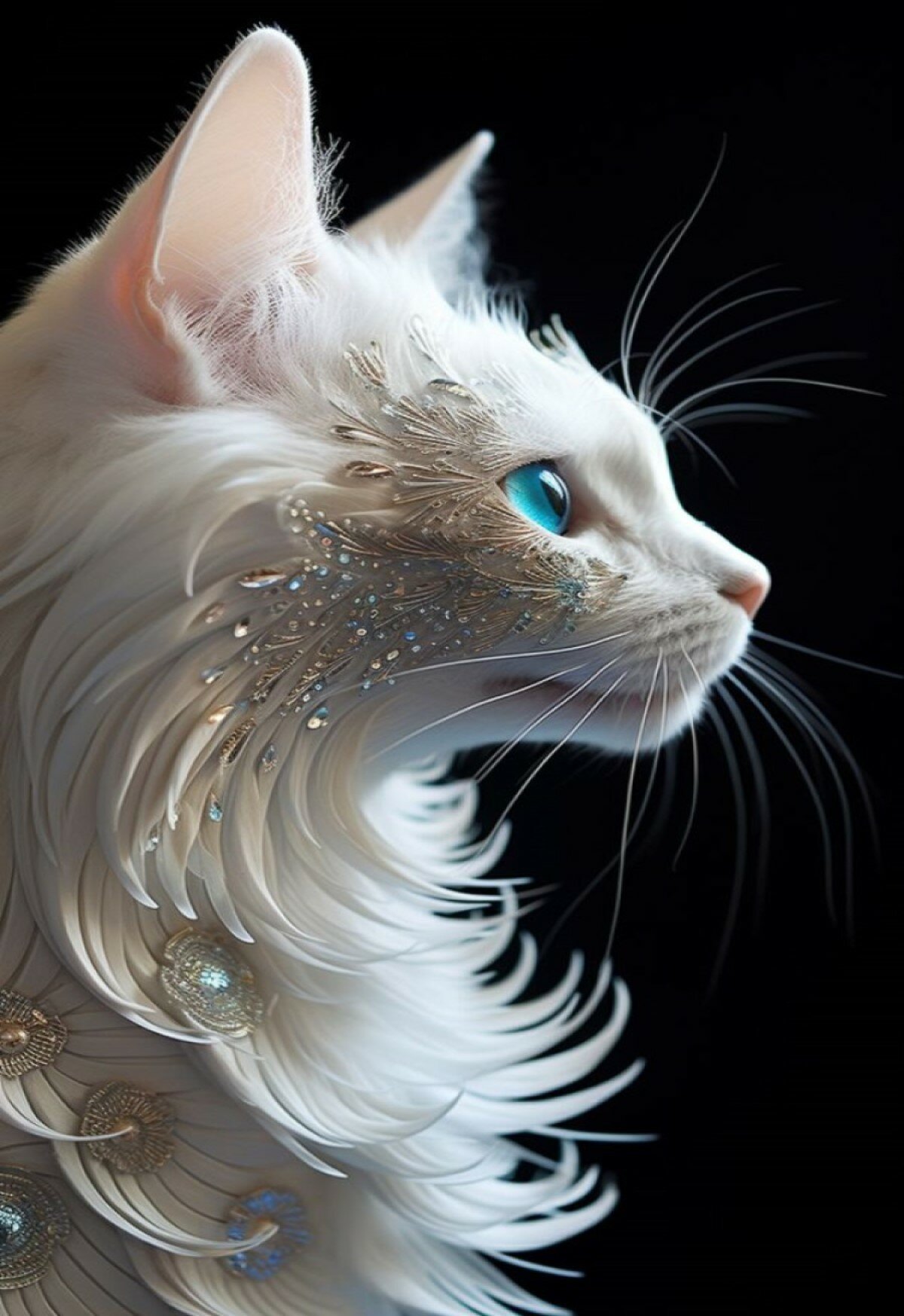 Купить Алмазная мозаика 40x50 см на холсте с подрамником. Белый кот в стразах в профиль