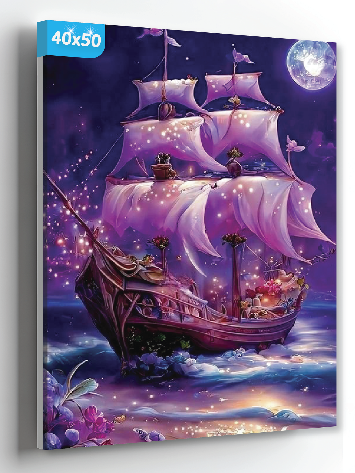 Купить Алмазная мозаика на подрамнике "Сказочный корабль" 40х50 Полная выкладка