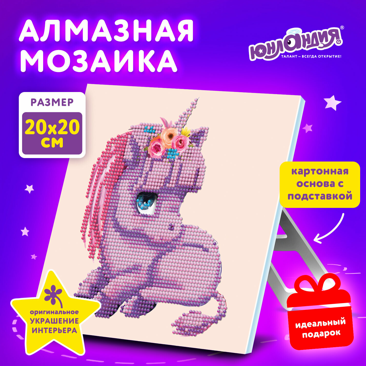 Купить Картина стразами (алмазная мозаика) 20х20 см, Юнландия Единорожек, картон, 662431